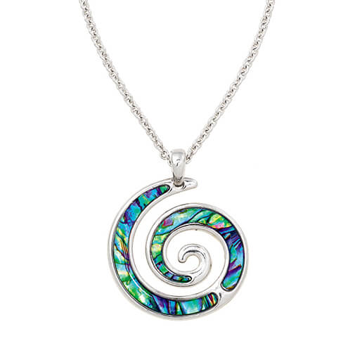 Make this truly unique Ocean Spiral Jewelry set part of your collection and wear it on a special occasion to add a pop of color and sophistication to your outfits. The set contains a pendant, a chain, and a pair of earrings - all plated with rhodium to enhance durability and rust-resistance. Each spiraling piece in this set is one-of-a-kind, featuring an abalone shell composition that adds a mesmerizing pattern of colors and shapes to the accessories, akin to a kaleidoscope. The pendant measures 3/2" and comes with its adjustable chain of 18"-19", while the earrings measure 3/4" - a delicate trio that you will love in your collection, and which makes a wonderful gift idea for someone dear.