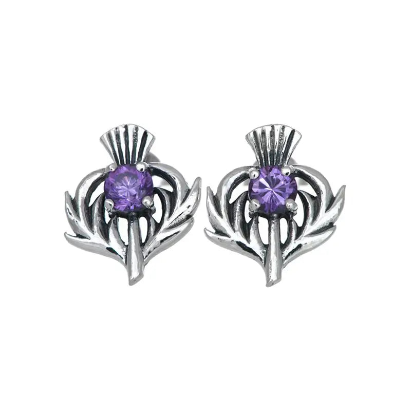 Show off your Scottish heritage with our Thistle Flower Stud Earrings with Amethyst. Meticulously crafted from 100% durable sterling silver, these earrings boast resilience against tarnish and rust while radiating a timeless shine. Designed with the Scottish thistle symbol, symbolizing bravery and strength, and adorned with soothing amethyst gemstones, they blend cultural significance with modern aesthetics. Measuring approximately 0.59 L x 0.47 W inches, these stud earrings complete any ensemble with sophistication and refinement. Whether worn to celebrate Scottish heritage or gifted to share the beauty of Scottish culture, they are a stylish addition to any jewelry collection and an ideal choice for any occasion.