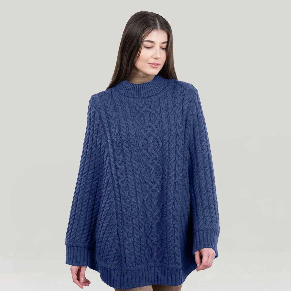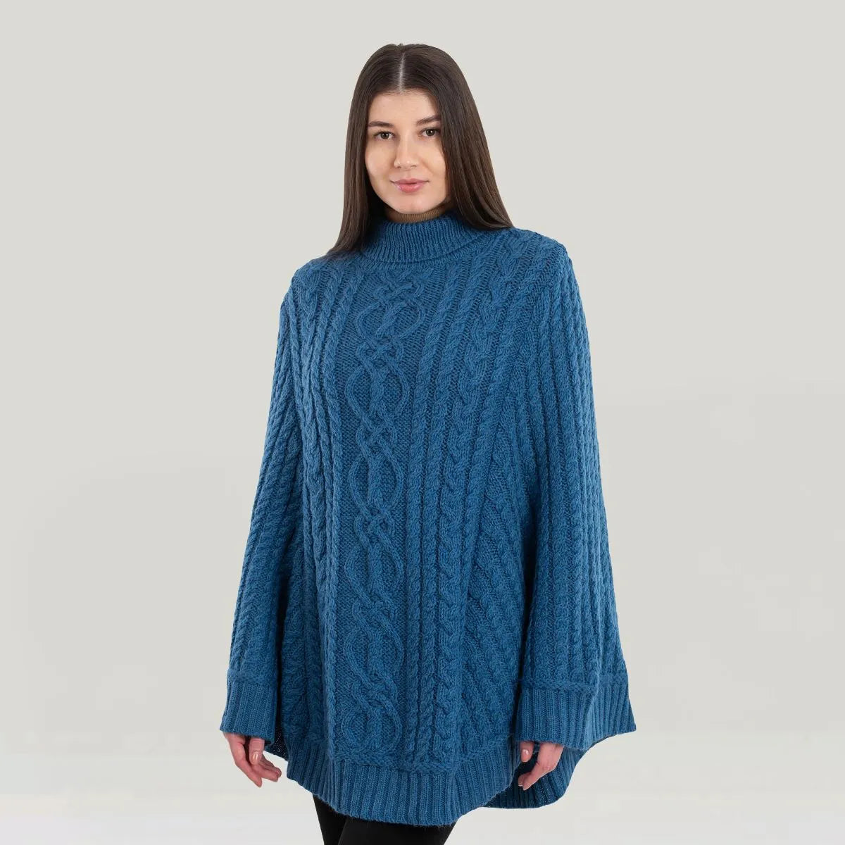 Irish Country Knit Poncho Teal  Blue  Gaelsong