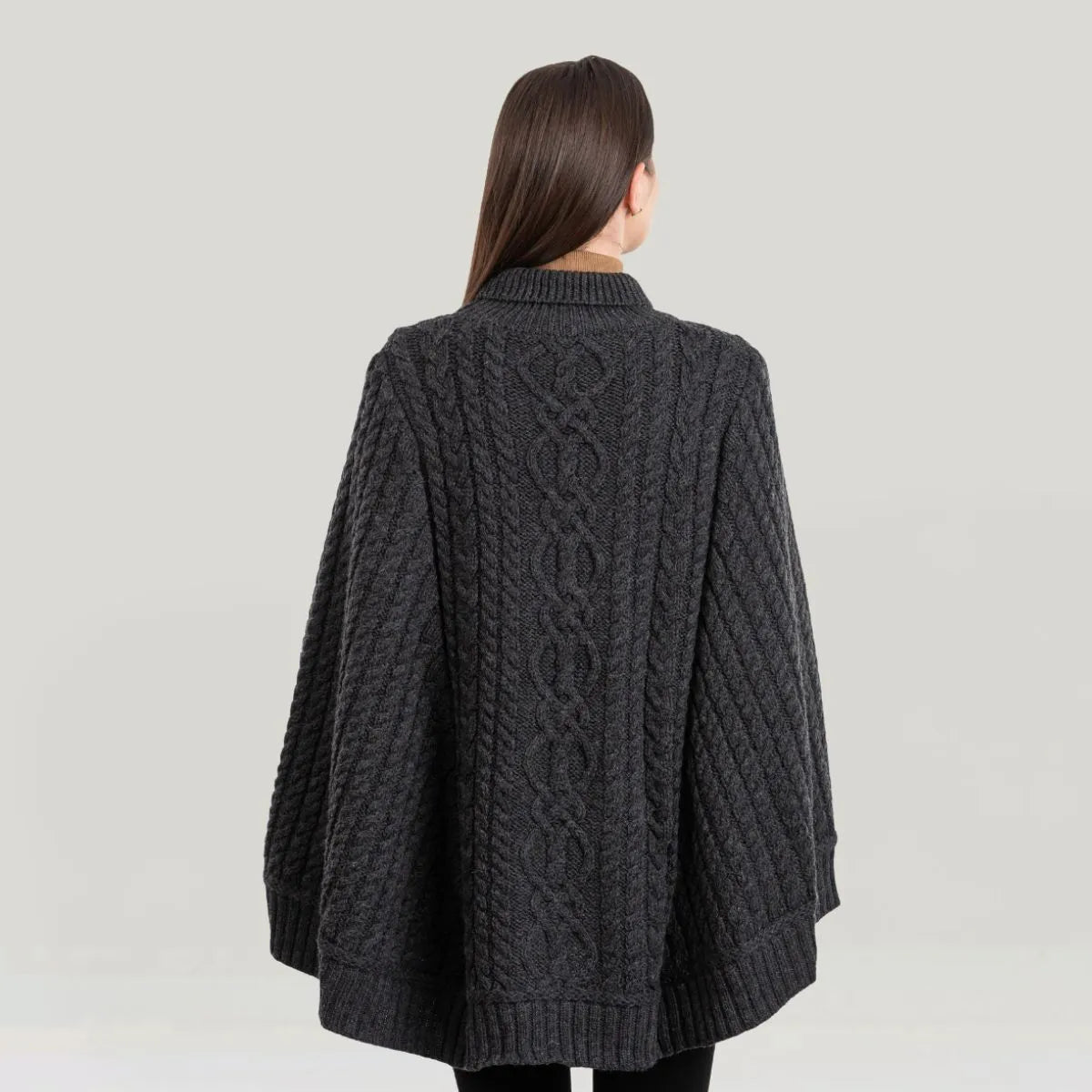 Irish Country Knit Poncho Charcoal Back View Gaelsong