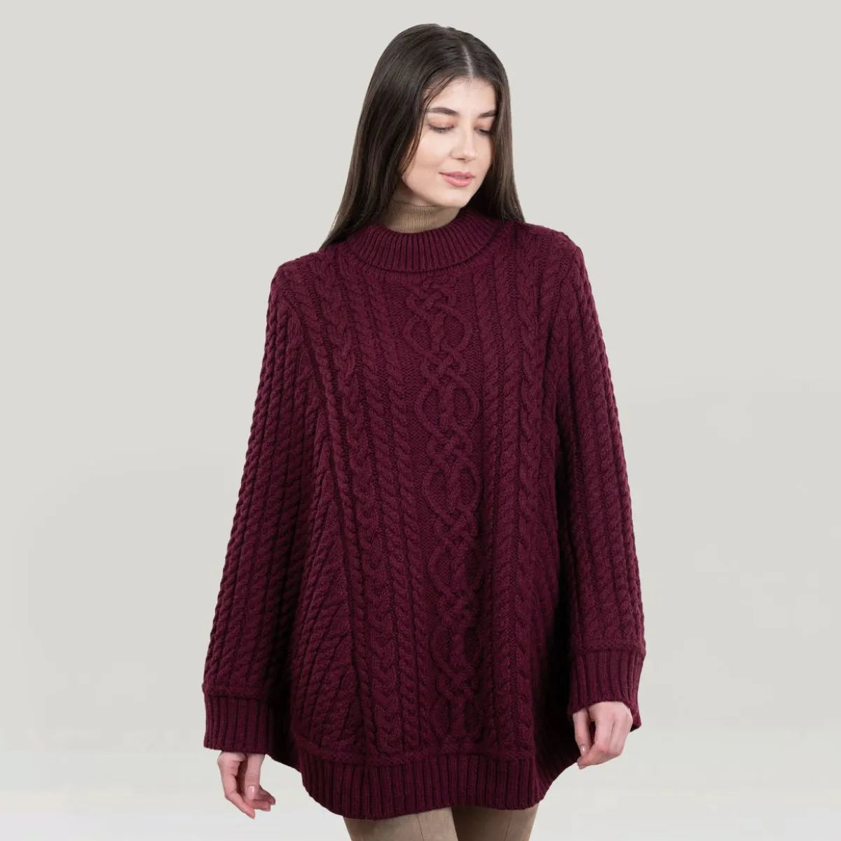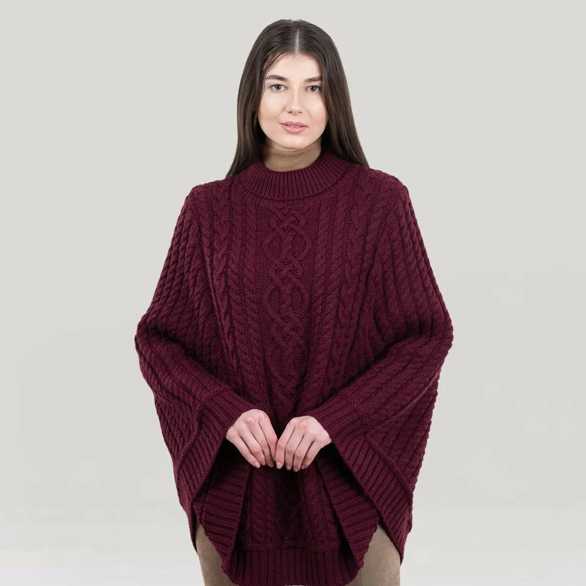 Irish Country Knit Poncho Wine Lifestyle Gaelsong