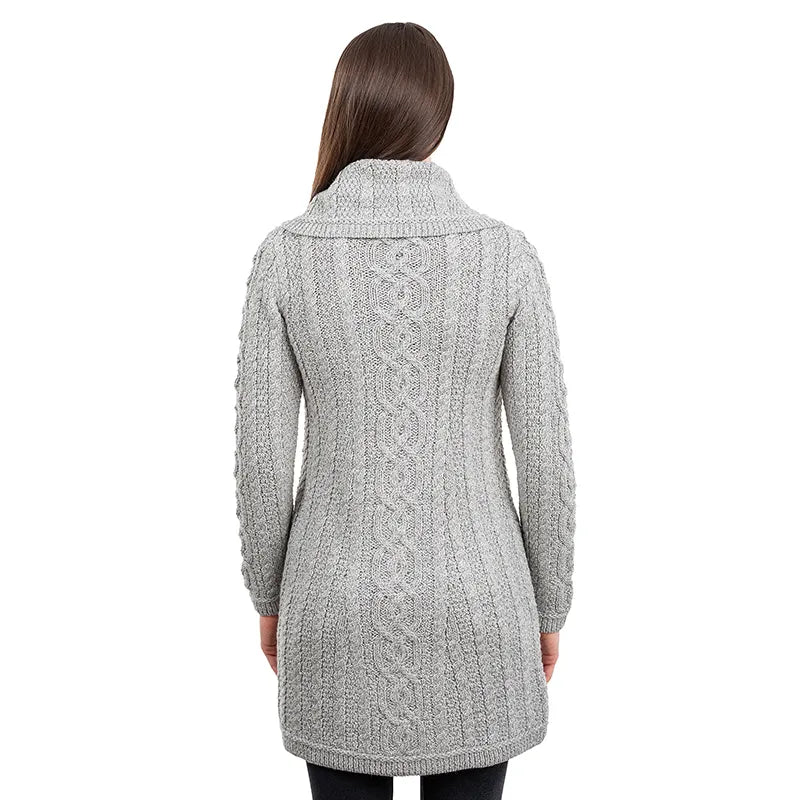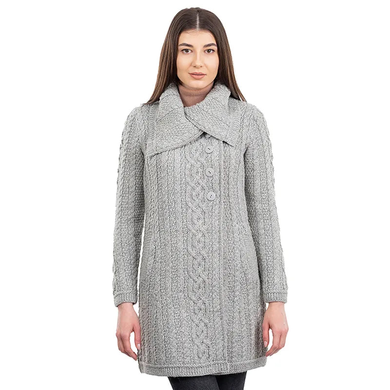 Asymmetrical Irish Sweater Coat with Chunky Collar