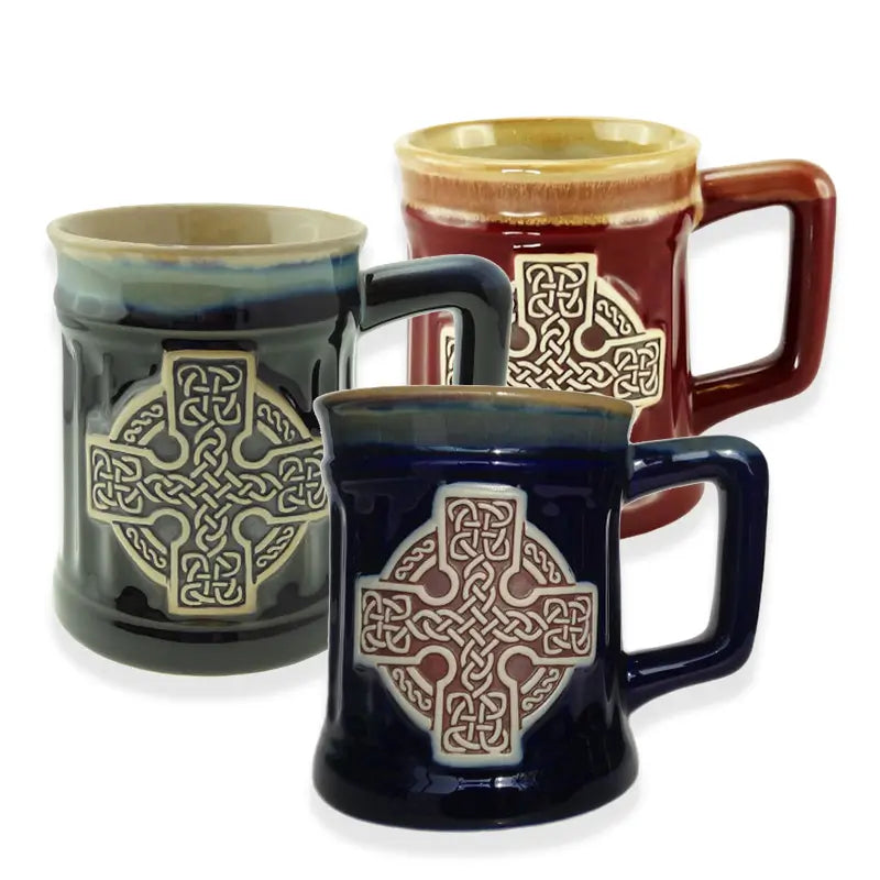 Skillfully crafted by hand, this Celtic Cross Charm Pottery Mug is great to enjoy a beer or your preferred brew while celebrating Irish tradition. Made of high-quality ceramic, the mug is resistant to scratches and durable, so you can enjoy it for a long time. Its hand-painted design details the High Cross in nice shades and textures, a common symbol throughout Ireland and a sign of hope, knowledge, and strength. The mug is practical and can comfortably hold up to 16.9 fluid ounces, making it a great addition to the kitchenware or mug collection of any Celtic culture enthusiast.