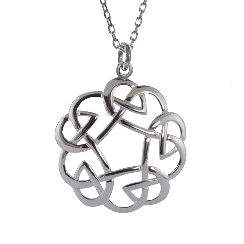 Celebrate the timeless beauty of the Everlasting Love Celtic Knot Necklace. This open-weave pendant, inspired by the Book of Kells, features stunning filigree knotwork in a graceful circular design. The unbroken lines weave over and under, symbolizing the endless bond of humanity and nature. Handcrafted in Ireland and hallmarked in Dublin Castle, this pendant is made from high-quality sterling silver, ensuring both elegance and durability. Measuring 1.02 inches in diameter, it hangs beautifully on an 18-inch chain, making it perfect for everyday wear or special occasions. Pair it with a matching Celtic knot bracelet or silver earrings to complete your look.