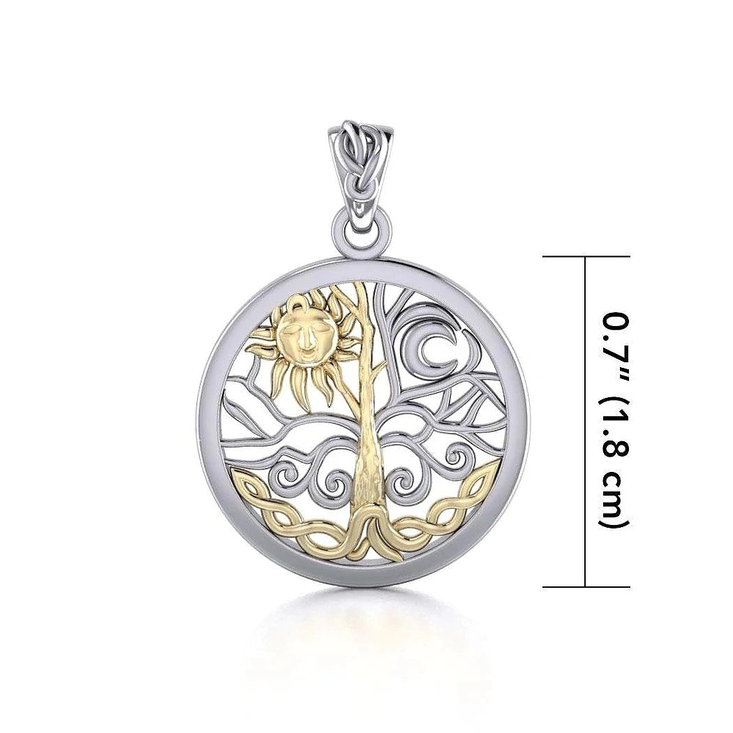 This Celtic pendant is an embodiment of beautiful Celtic heritage combined with the highest quality materials. Made out of sterling silver and 14k Gold, this remarkable Celtic Pendant features a unique Sun and Moon Design. Sterling Silver is rust resistant material, known for its durability and it will definitely attract the eyes of those around. The Design is a beautiful combination of the sun and the moon, yellow gold sun and sterling silver moon, both interlinked within the branches of the Celtic tree of life. Added to it are dazzling nature details that blend together harmoniously. The Pendant is measuring 0.7 inches in diameter and comes in a chic box together with a 18 inches Sterling Silver Chain. The Sun and Moon Celtic Pendant gives a perfect finish touch to the wearer.