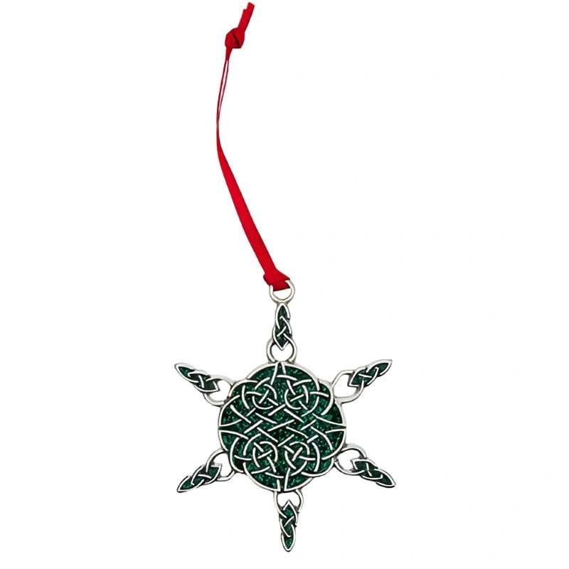 Every snowflake is unique, and this Irish Christmas blessing ornament is no exception. Give the gift of this stunning snowflake formed of Celtic eternal knots. Solid metal with pewter finish, comes with ribbon and gift box.