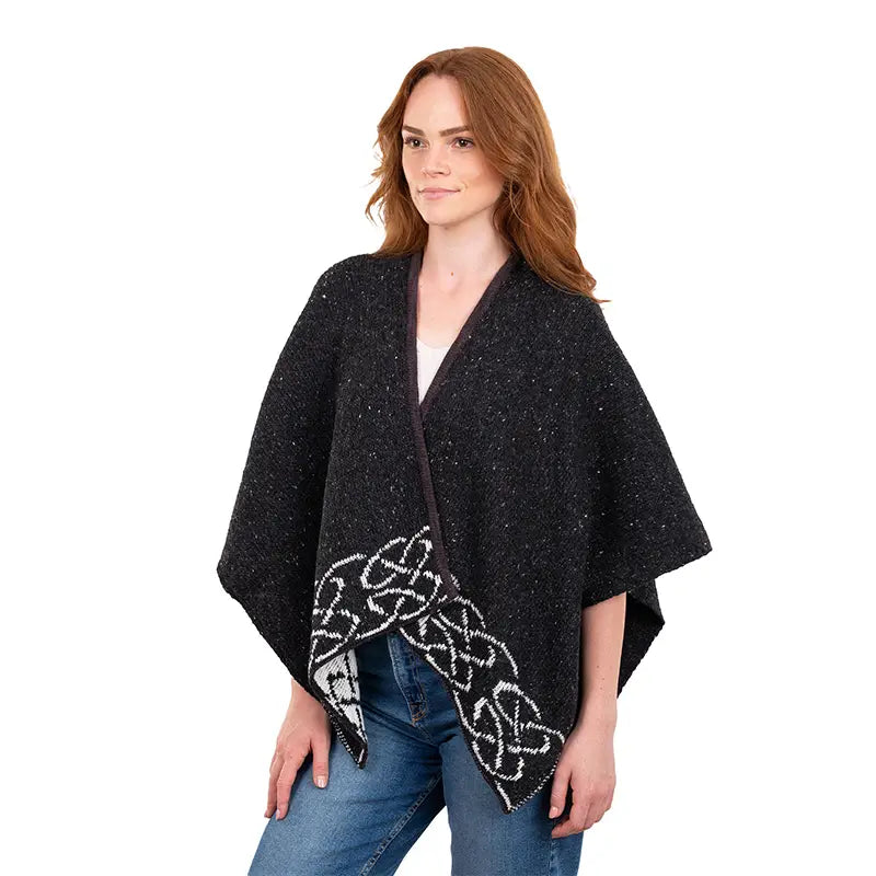 This season, get ready to stay cozy while accessorizing your outfits in classic Scottish style with our Open Front Geometric Celtic Stole. Wondering what makes this shawl so special? It's inspired by your heritage, handcrafted in Edinburgh, and authentically combines traditional style with a fresh, modern approach. This piece is masterfully knit with intricate Celtic knotwork patterns on the bottom of both sides. The design is more than simply beautiful - it's also meaningful. Since ancient Celtic times, knotwork has been associated with the idea of the interconnectedness of all things in the universe. It's a unique representation of the bonds that tie us together, also regarded as a symbol of never-ending love. Plus, this Celtic stole has a cool reversible design, so you get two different looks in just one piece! Made of a soft Merino wool and linen blend, the stole has a high-quality, smooth feel, keeping you comfortable all year round. It offers the right amount of warmth when you need an extra layer, given its great heat insulation, and maintains you dry on both hot summer days and rainy fall weather, due to its moisture-wicking properties and breathability. Even better, the material blend makes the stole sturdy and guaranteed to be part of your wardrobe for decades. It also has an open front so it can be styled in many ways - check out our Celtic Brooches & Pins to add that extra Celtic dazzle to your stole. The stole measures 21.6 inches long and 36.2 wide, with a one-size fit that flatters anyone. For the best long-term maintenance hand wash only in cold water and dry flat.