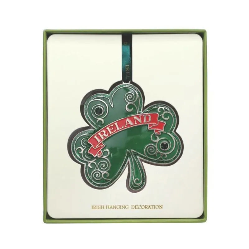 Add sparkles of Irish charm to your holiday decor with our Metal Irish Designed Hanging Christmas Decoration! You can choose from 4 stunning ornaments, the one that suits your aesthetic best - Irish Shamrock, Celtic High Cross (3.5'' L), Trinity Knot (3.5'' L x 3.5'' W), and Claddagh Ring. No matter which one you choose, each design is as special as the other: the shamrock is a symbol of the Holy Trinity in Irish Christianity, the Celtic Cross represents the union of the past, present, and future, the Trinity Knot is an emblem of connection and faith, whereas the Claddagh stands for love, faith, and friendship. The ornaments are made of a premium metal base with a colorful enamel finish - look closely, some of the decorations feature glossy glitter finishes or dazzling rhinestones. The Irish Christmas decoration comes with bright green ribbons for easy hanging in the tree or any other place of your choice. It comes in a beautiful presentation box, so you can offer it as a Secret Santa gift or a special present to your Irish colleague or friend. Whether a unique addition to your Celtic Christmas decor or a sweet gift, our Irish hanging ornaments are designed to last a lifetime.