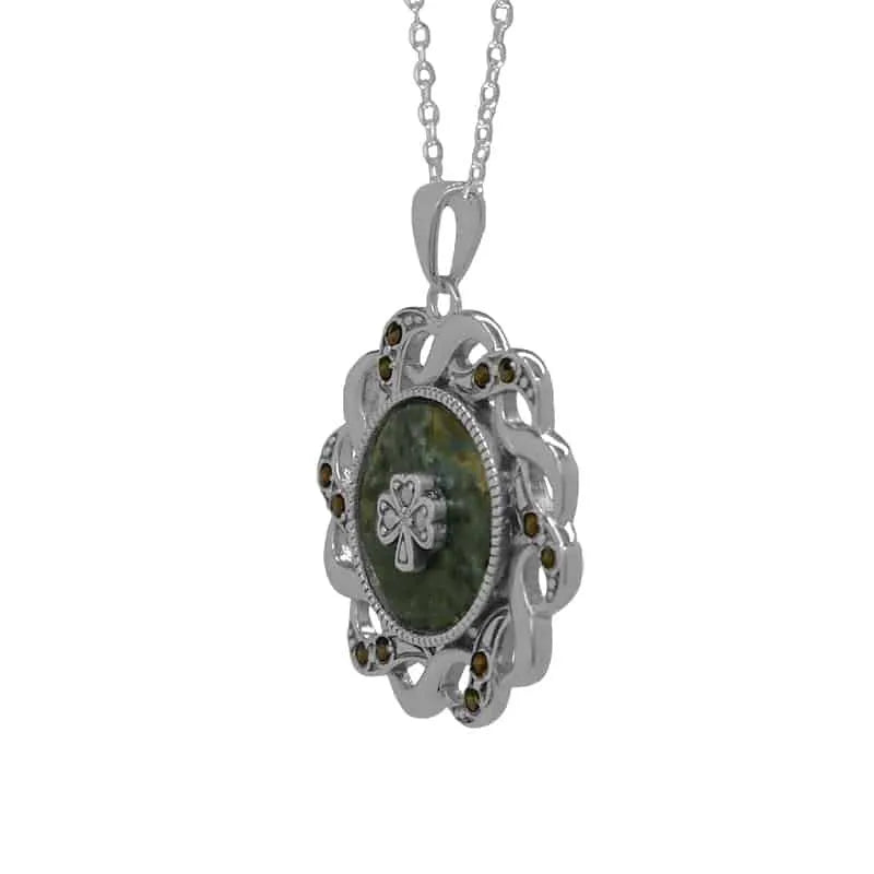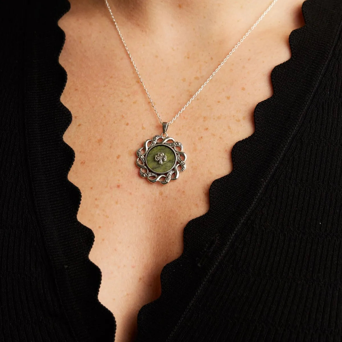 Interlaced Marcasite Shamrock Connemara Marble Pendant