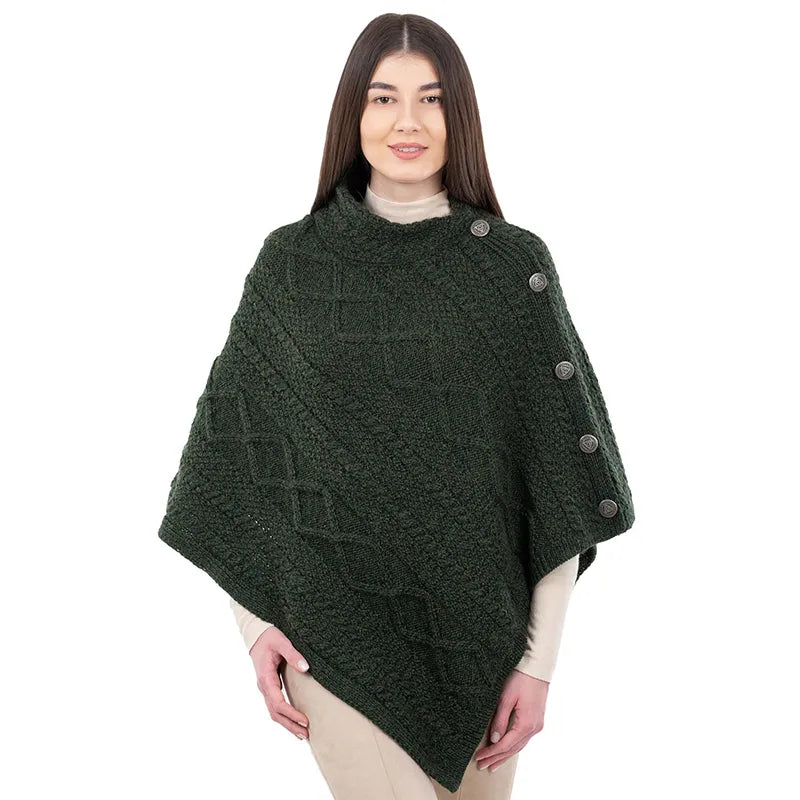 Celtic Knots Traditional Cowl Neck Poncho Green Gaeslosng