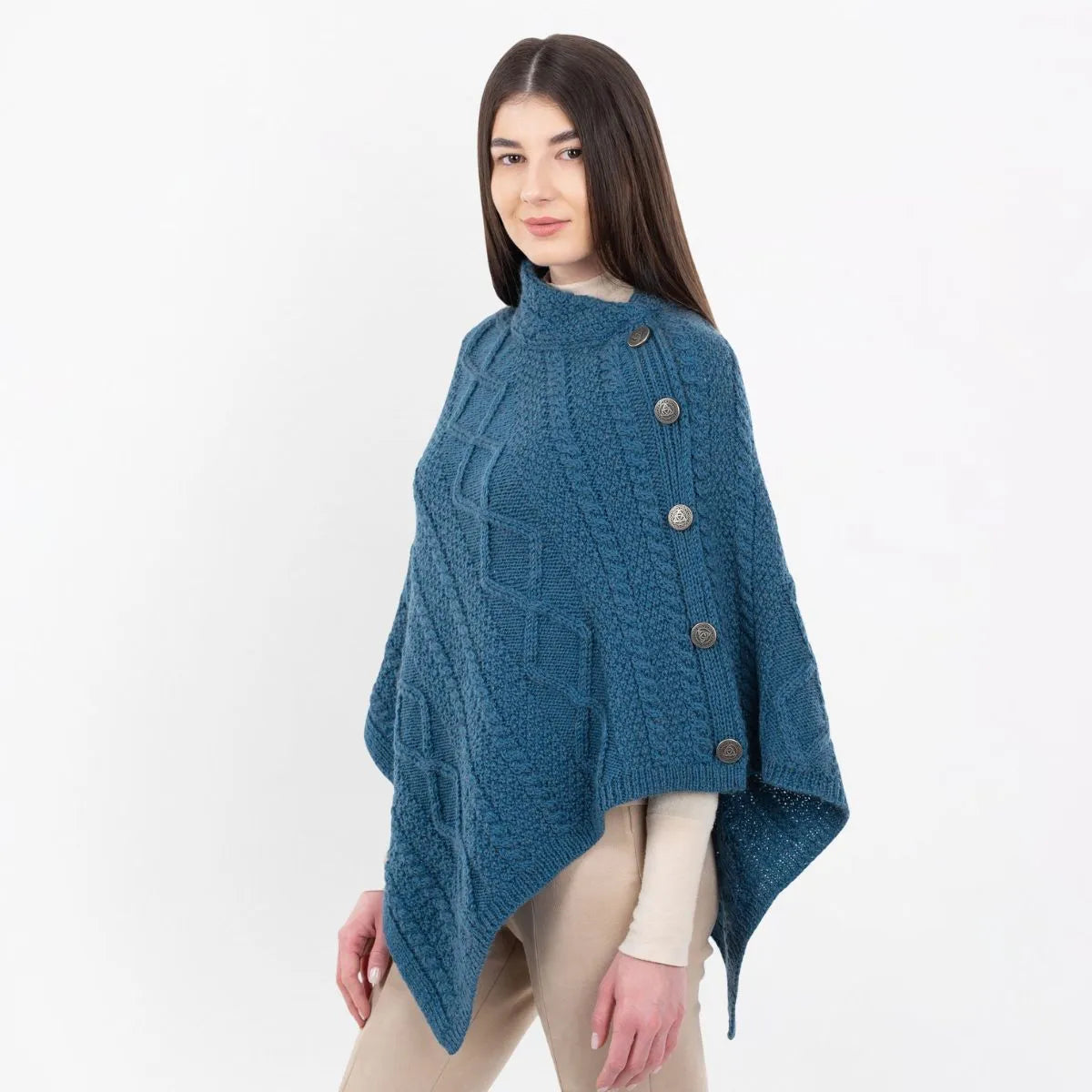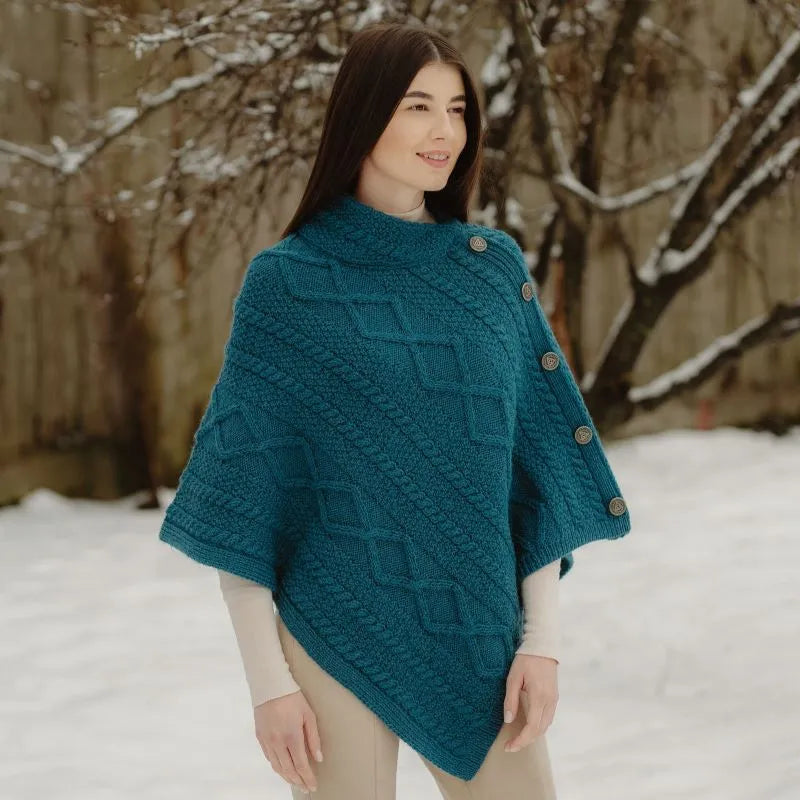 A10073 TEAL Colour Celtic Knots Traditional Cowl Neck Poncho Gaelsong