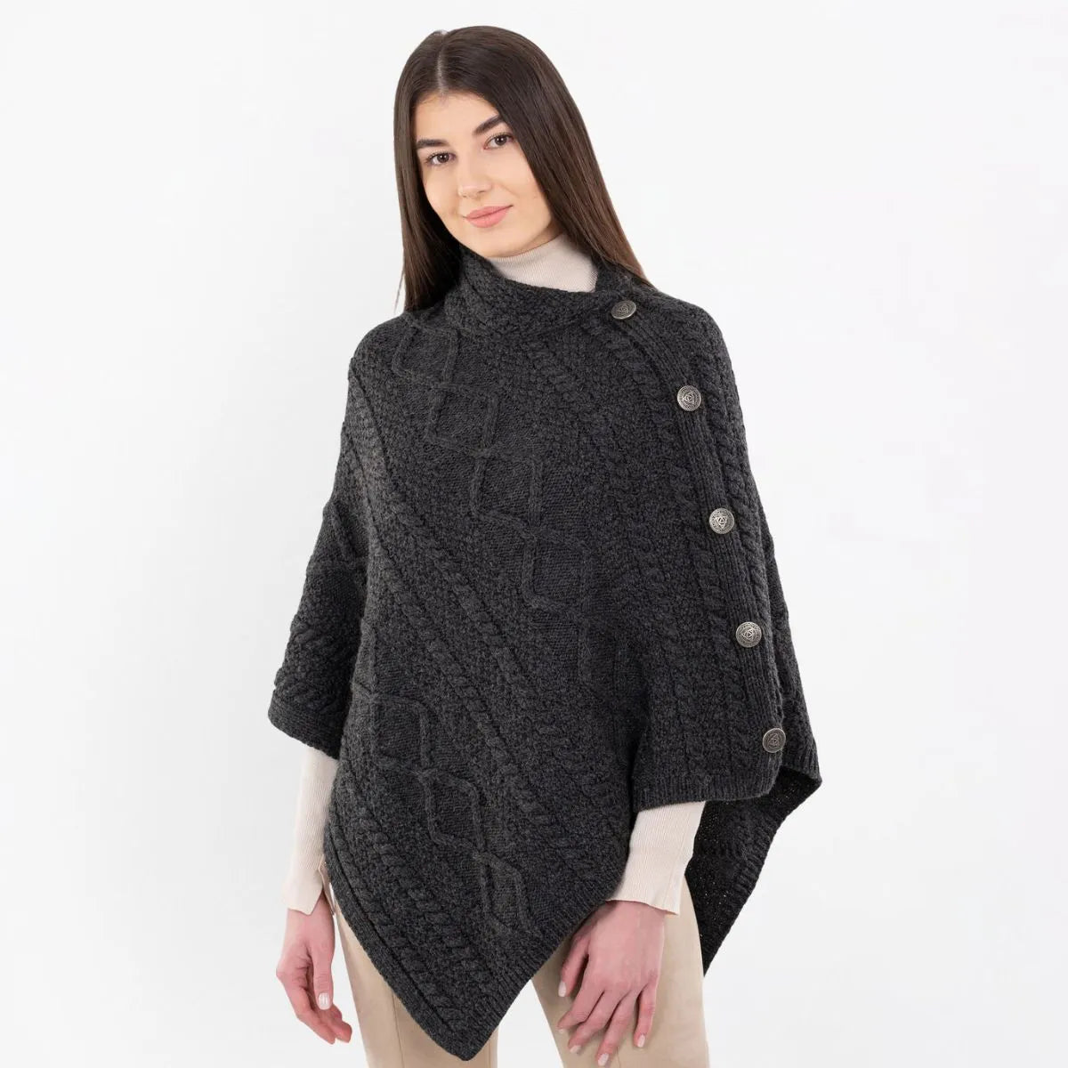 A10073 CHARCOAL Colour Celtic Knots Traditional Cowl Neck Poncho Gaelsong