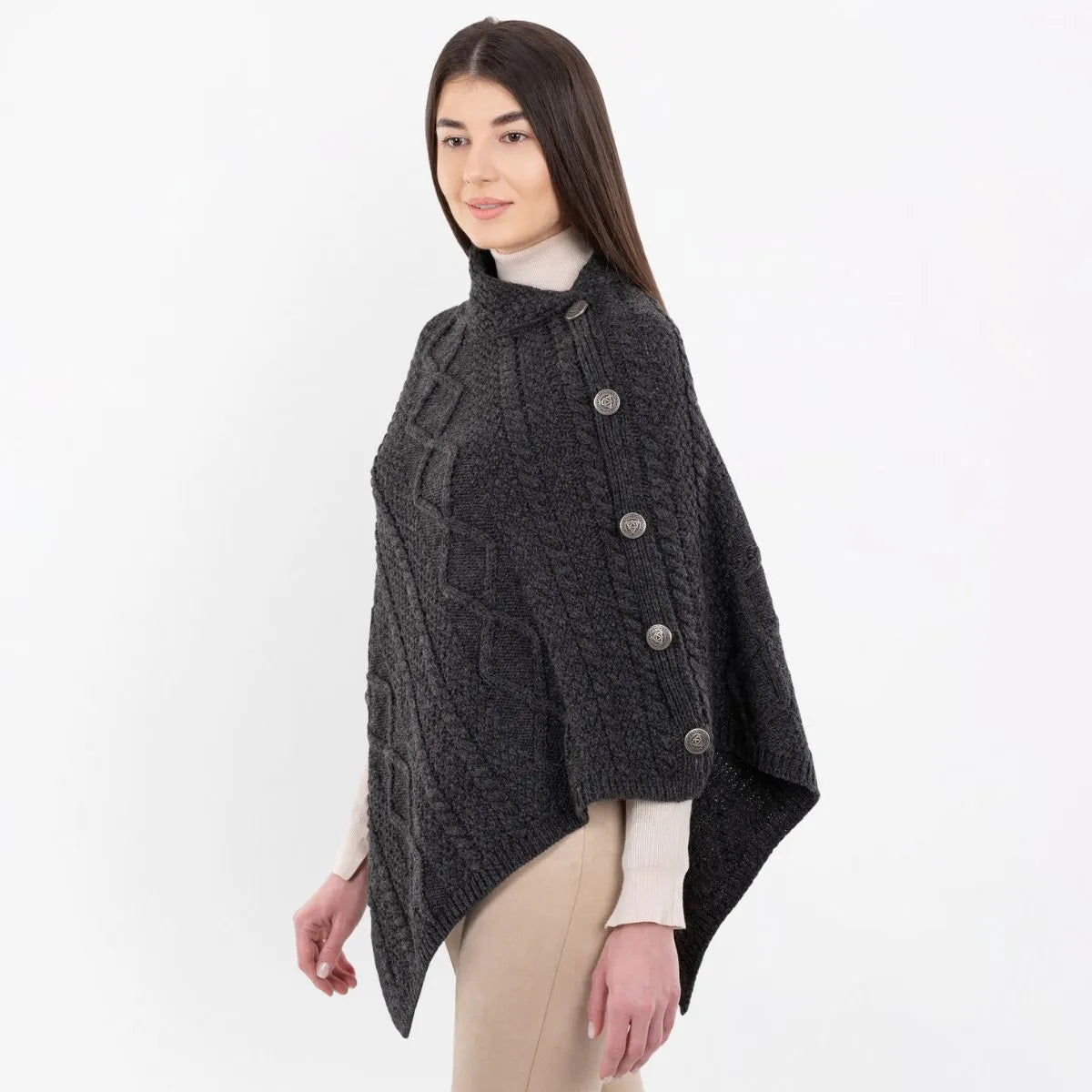 Celtic Knots Traditional Cowl Neck Poncho Charcoal Side View Gaeslosng