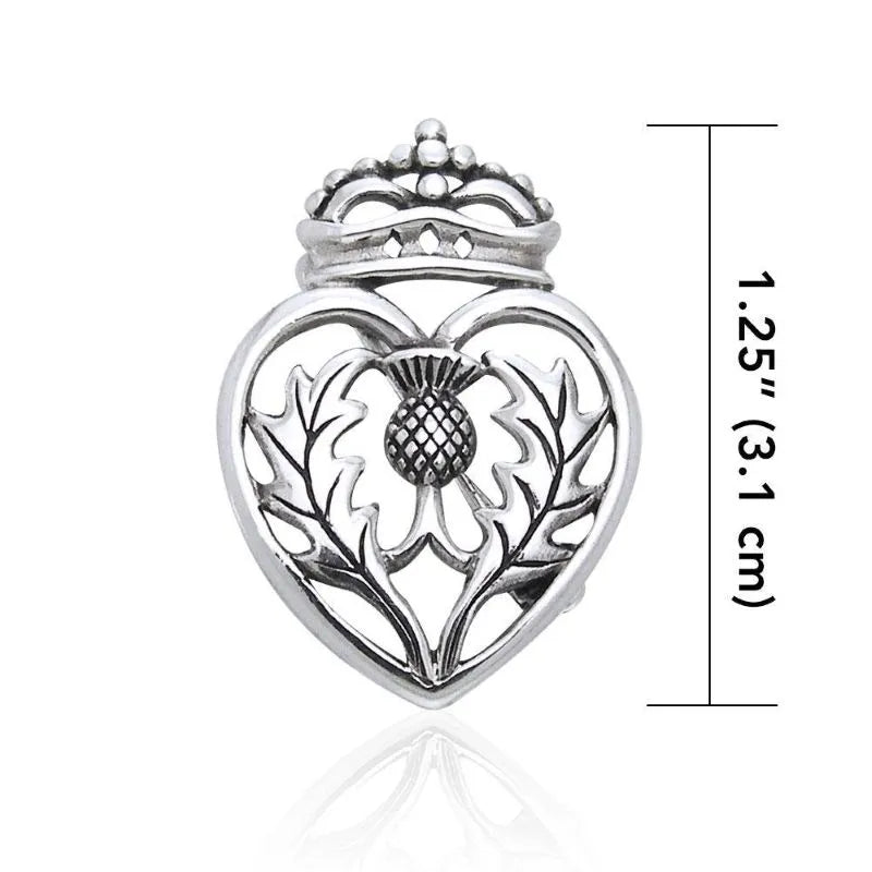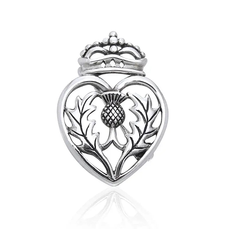 This gorgeous pin is the perfect piece to show off your pride in your heritage. It features a Scottish thistle enveloped in a Claddagh heart, which is a unique and meaningful combination of symbols. The Scottish thistle is a national emblem of Scotland and a symbol of bravery, and the Claddagh is an Irish symbol that represents love, friendship, and loyalty. This pin is a beautiful way to pay tribute to both of these cultures. Besides, taken together, these cultural emblems send a message about fighting bravely for what you love. Add this amazing accessory to your of Scottish thistle gifts or offer it as a gift to someone special! Comes in a branded gift box.