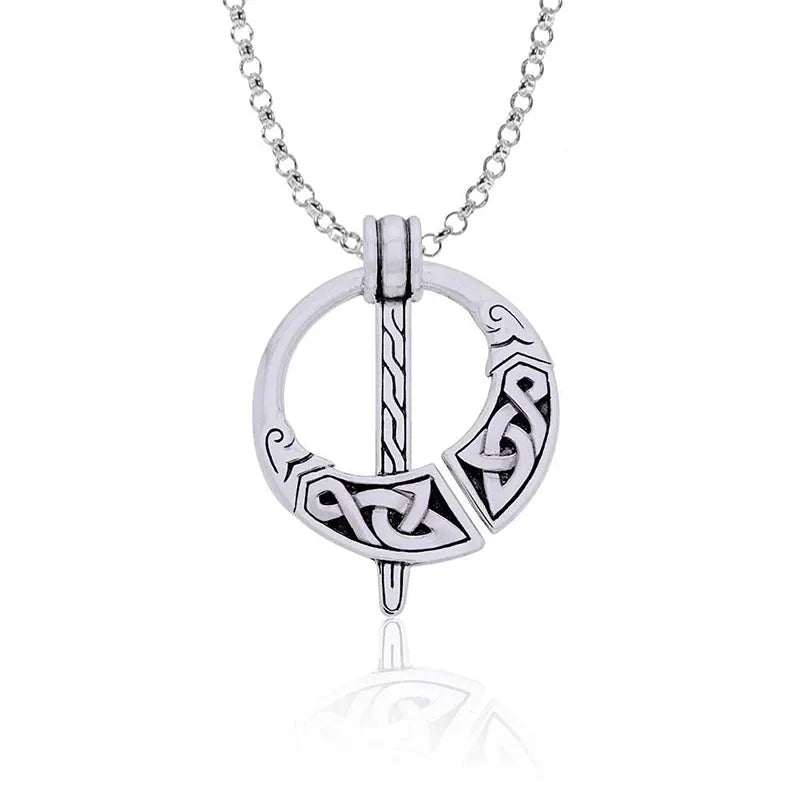 Indulge in Celtic heritage with this Danu Knotwork Engraved Brooch Pendant. It's all about that intricate Celtic knotwork design, symbolizing how everything's connected and eternal. It's crafted from top-notch sterling silver, so you know this Celtic pendant is stylish and built to last, too. At 1.65'' H, it's big enough to make a statement. Plus, it comes with a 20'' rolo chain, perfect for showing off that Celtic flair. This pendant is ideal for adding a bit of charm to any outfit, whether you're going casual or dressing up for a special occasion.