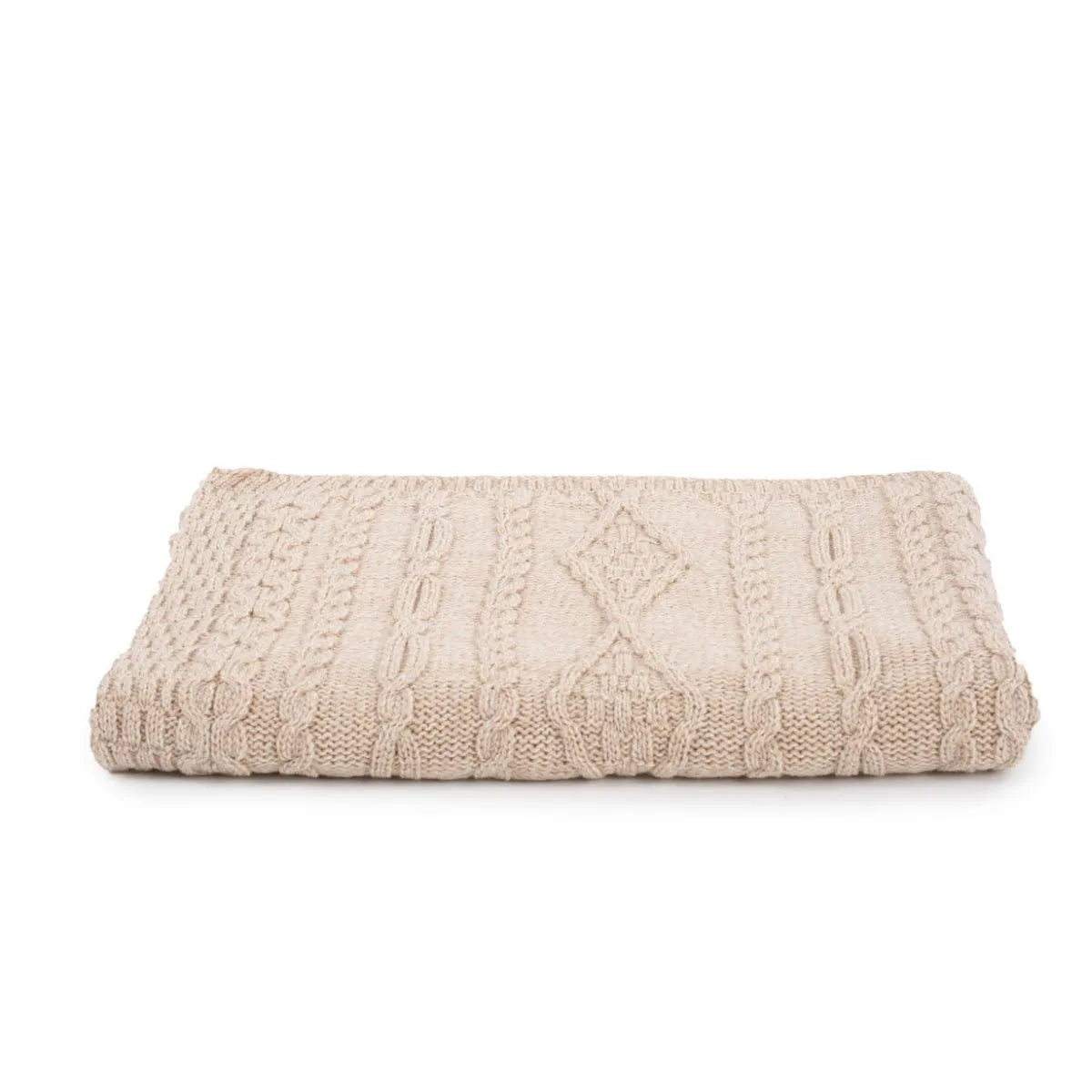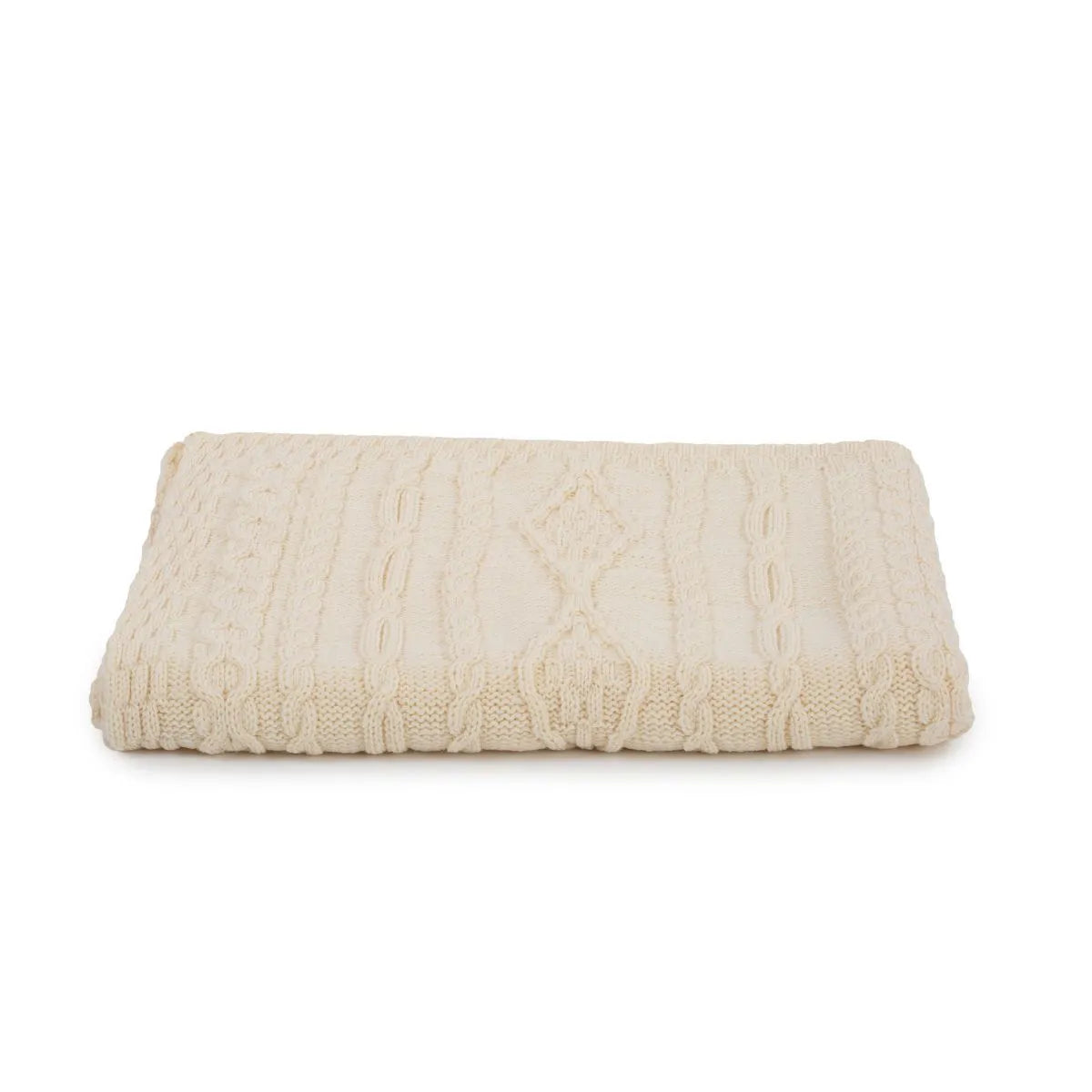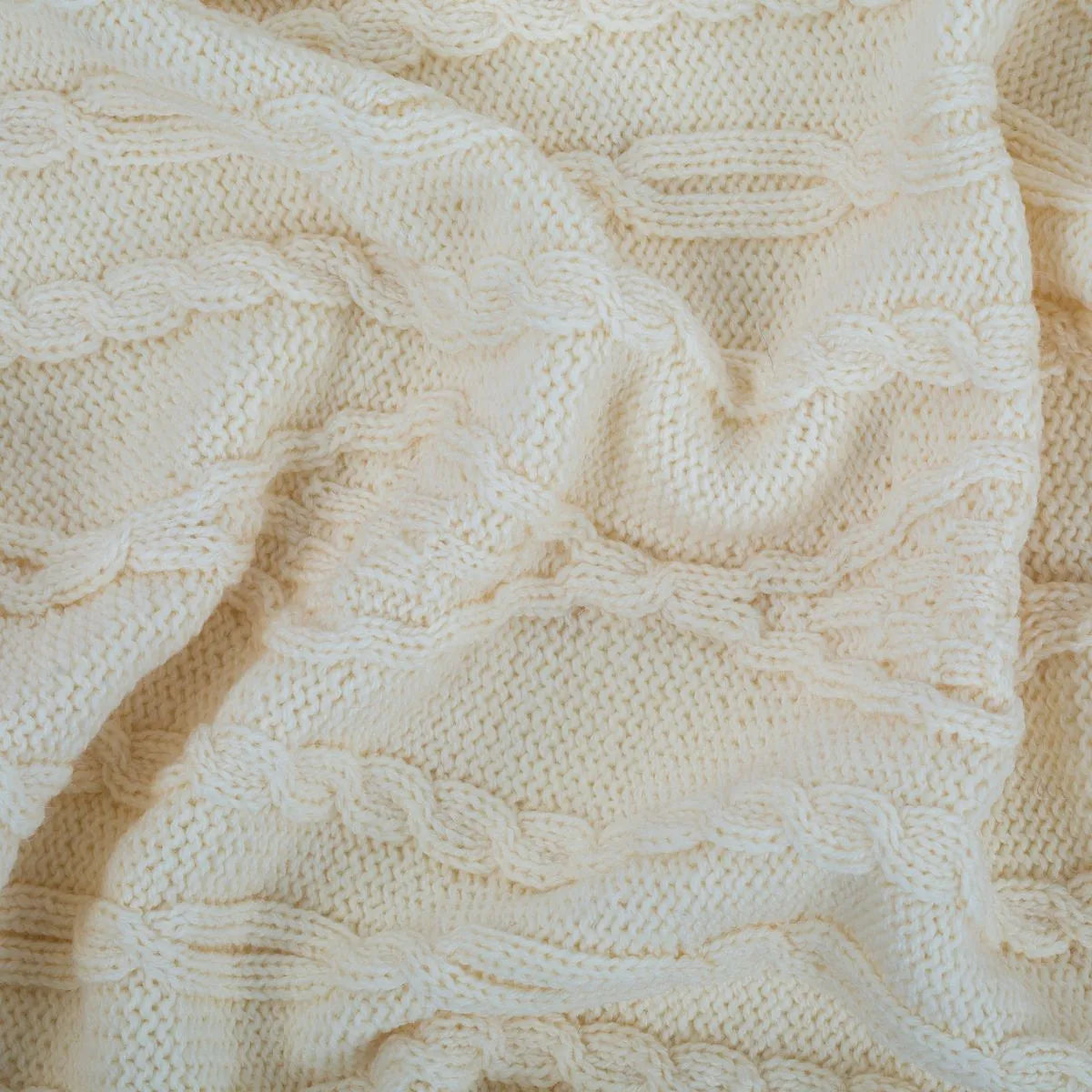 If you wish to infuse your home with Aran authenticity, choose our Achill Fisherman Diamond Knit Aran Throw. Our throw is crafted from 100% fishermen wool, a warm and thick material that is sure to last for many years to come. The design is inspired by the natural beauty of the Irish island Achill. The traditional Aran cable stitches allude to the fishermen's ropes and represent good luck. The diamond stitches are reminiscent of the farms scattered across the island and symbolize success. This Aran knitted throw measures 66.93 inches in length and 44.09-45.28 inches in width, ideal for cuddling up with your loved ones on a cold evening. Get this Irish throw for your home or offer it to your family for the holidays!