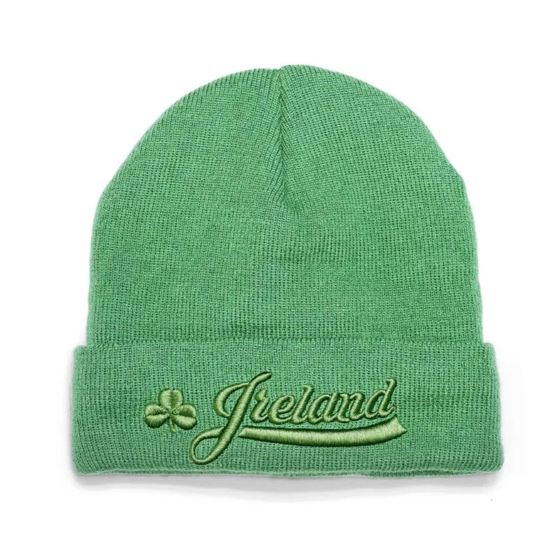 Green Embroidered Irish Shamrock Beanie