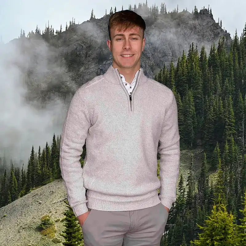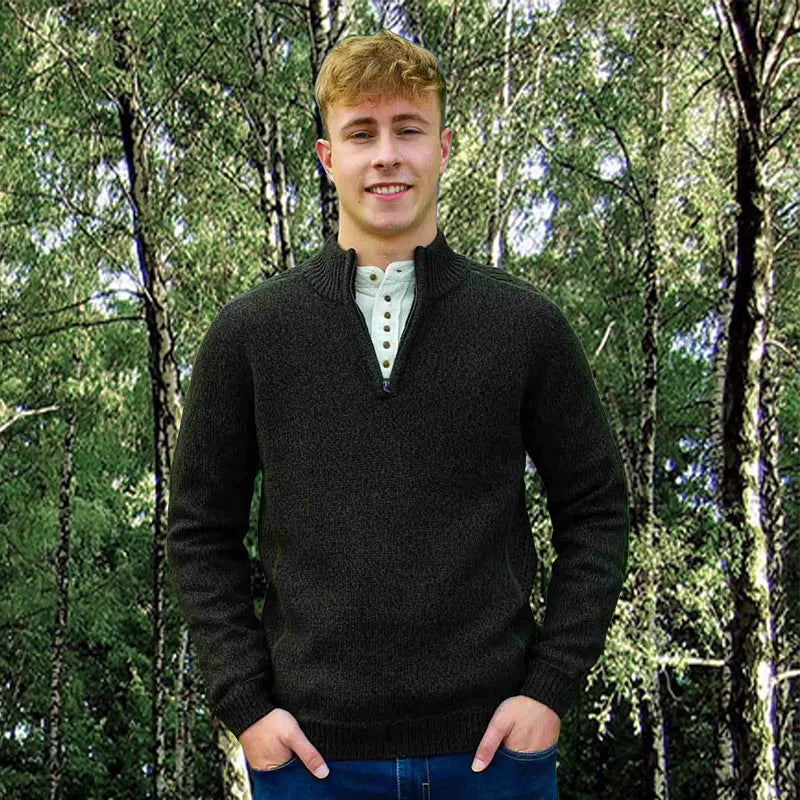 Our Irish Style Fisherman Zip Sweater is a modern nod to Ireland's most iconic garment. Inspired by the classic sweaters worn by Irish fishermen during their daring sea voyages, this sweater combines timeless charm with practical comfort. Whether you're braving the outdoors or enjoying a relaxed day at home, it's a perfect blend of modern style and traditional fashion. Crafted from a premium wool blend, this sweater offers the ideal mix of softness, warmth, and durability. It feels wonderfully smooth on the skin, providing all-day comfort while standing up to years of wear. The natural insulating properties of the wool blend keep you cozy on cold days while remaining breathable - perfect for all seasons. The half-zip turtleneck design adds a contemporary touch and makes it easy to layer over shirts or under jackets. Ribbed cuffs and hem ensure a snug fit, trapping warmth where you need it most. The sweater's versatile design pairs effortlessly with jeans for casual outings or slacks for a dressed-up look. Looking for a thoughtful gift? This sweater is a fantastic choice for anyone who values quality, comfort, and a touch of Irish tradition. Timeless and stylish, it's a wardrobe staple they'll treasure.