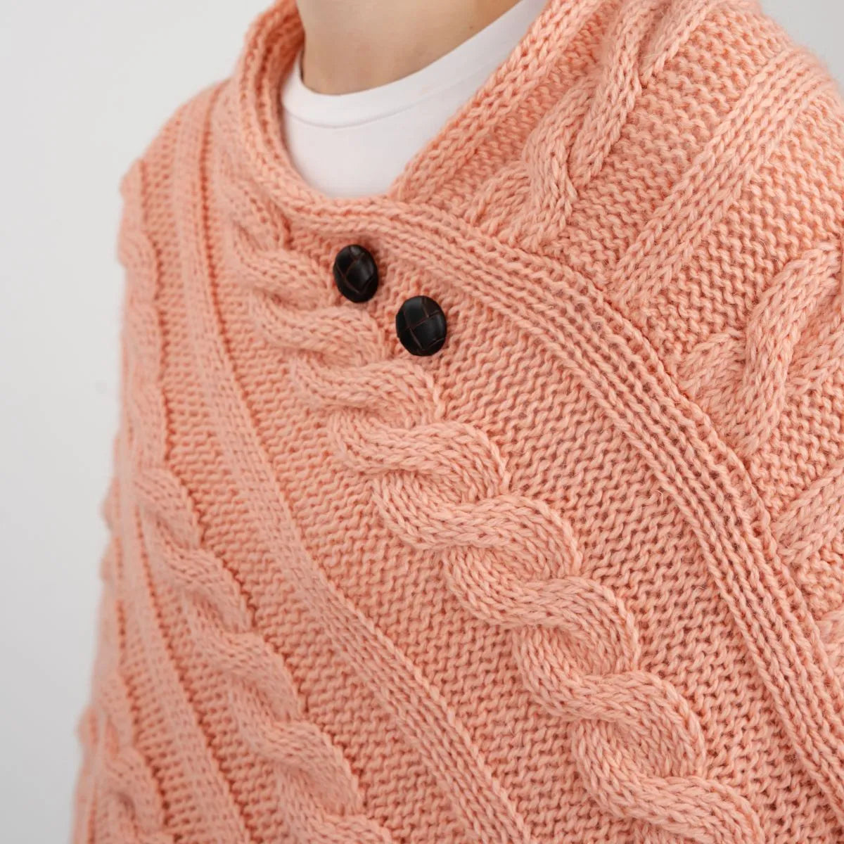 Fisherman Wool Buttoned Aran Poncho