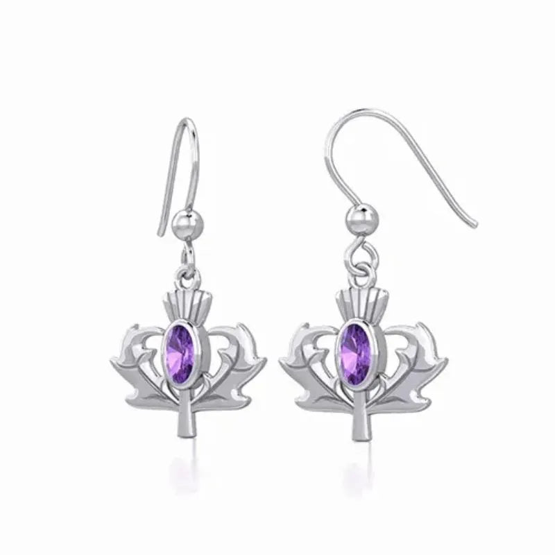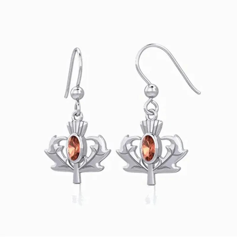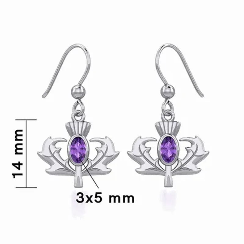 Our Thistle Designed Drop Earrings with Gemstone blend timeless beauty with rich symbolism. Crafted from 100% sterling silver, they exude quality and sophistication. The centerpiece of each earring is a delicate thistle design, paying homage to Scotland's emblematic flower. The thistle, with its prickly exterior and resilient nature, serves as a powerful symbol of strength and endurance. Adding to their allure, each earring features a 0.11 x0.19 inches oval gemstone, enhancing their charm with a touch of color and sparkle. Measuring 0.55 inches in height, these Scottish earrings subtly catch the light as they drop gracefully from the ears. Whether worn for a special occasion or to infuse everyday attire with a touch of elegance, these earrings are sure to captivate.