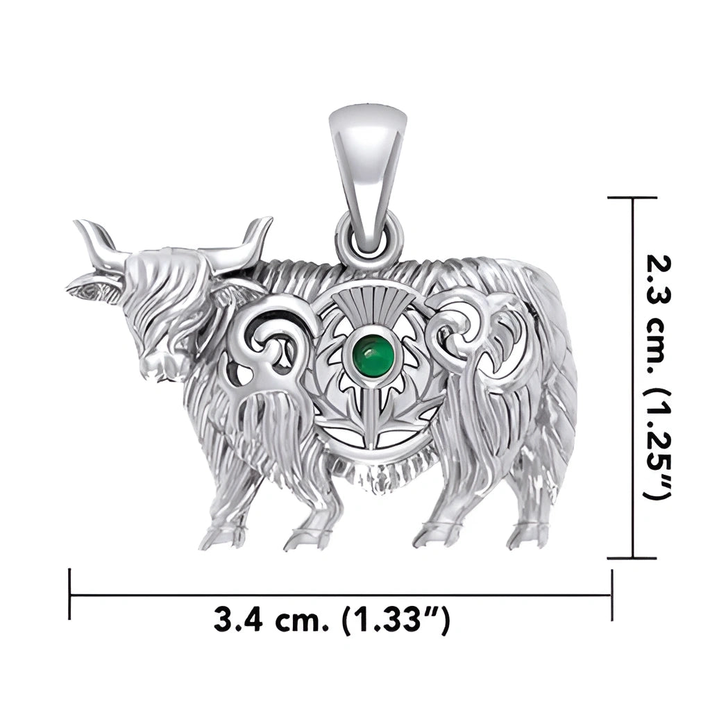 J24439EG Highland Cow Thistle Pendant with Gemstone Green Gaelsong