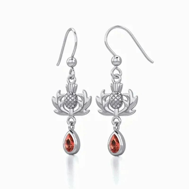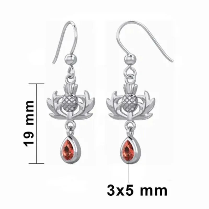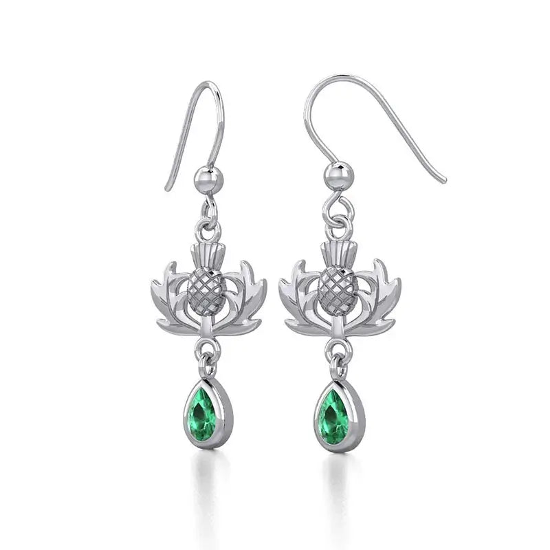 Our Silver Thistle Dangle Earrings with Gemstone are finely crafted from 100% sterling silver - a quality material destined to endure for generations, boasting a lustrous shine and a rust-resistant finish. You will embrace Scottish heritage with the iconic thistle design, symbolizing strength and determination ingrained in Scottish culture. The dangling droplet gemstone at the heart of each earring, sized 0.11" x 0.19" adds an enchanting sparkle and colorful allure. Standing at 0.74" in height, these earrings offer delicate elegance suitable for both everyday wear and special occasions. A thoughtful Scottish gift idea for a cherished woman or a delightful treat for yourself, these earrings are a refined way to elevate any ensemble.