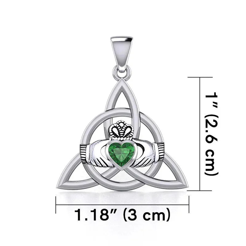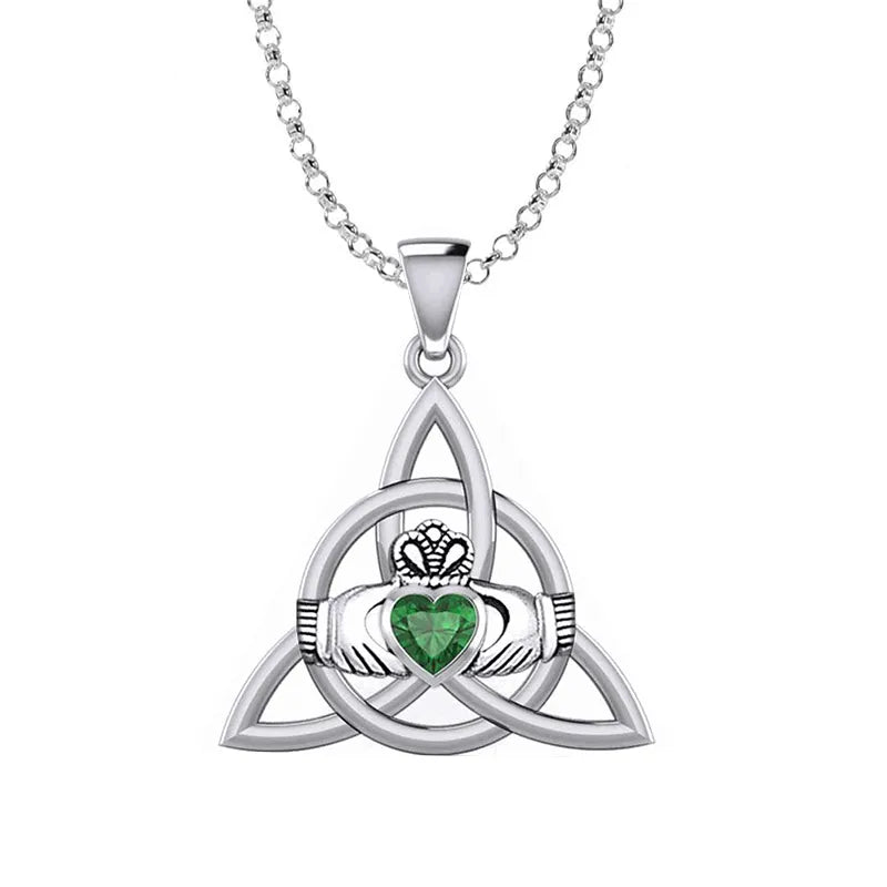 Gemstone Claddagh Triquetra Irish Pendant