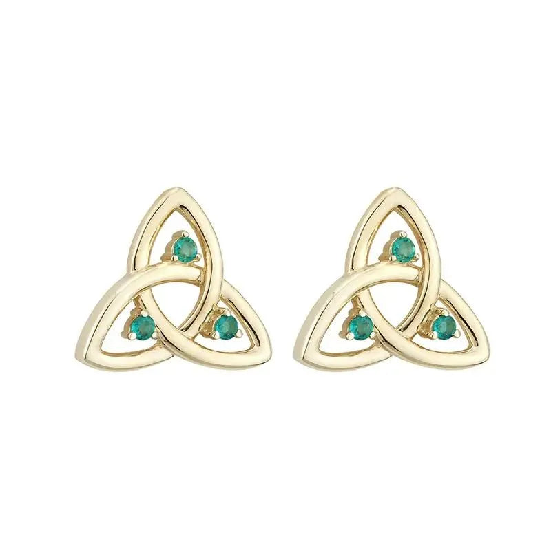 Add a touch of elegance and Irish charm to your ensemble with our delicate 14K Emerald Trinity Knot Stud Earrings. Crafted from 14K Gold, these earrings exude high quality and timeless beauty, ensuring they will pass the test of time in your collection. The earrings feature the Celtic Triquetra, reminiscent of the Holy Trinity in Irish Christianity. Each earring is adorned with three emerald jewels, adding a touch of sparkle and enhancing their sophistication. Sized 0.55 x 0.55"", these delicate stud earrings are perfect for any occasion. Coming in an elegant presentation box, they make an ideal Irish gift for a loved one, boasting style and cultural significance.