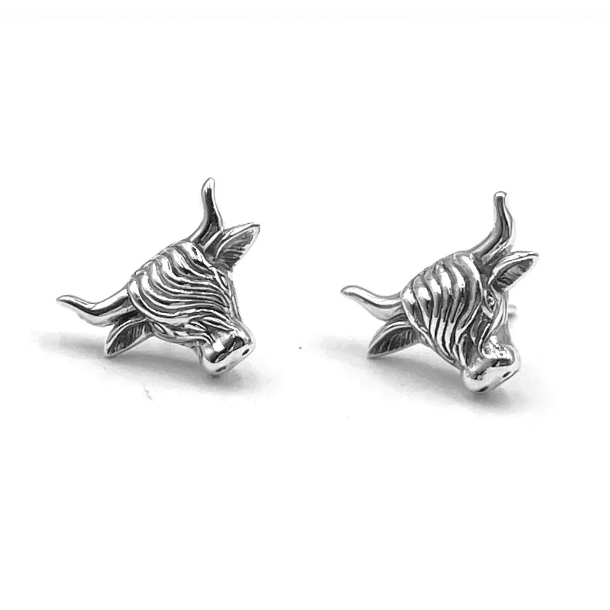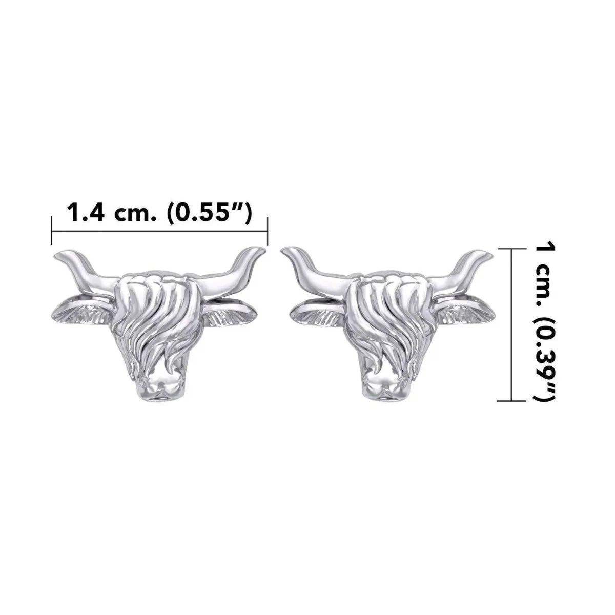 Whispering tales of the Scottish Highlands, our Highland Cow Post Earrings in Silver capture the spirit of these friendly creatures and bring it into your jewelry collection! Crafted of 100% sterling silver, the earrings exude timeless elegance, shine, and rust-resistance. The whimsical design features a miniature Highland cow head, meticulously sculpted to showcase its textured fur, curved horns, and expressive eyes. Measuring 0.55" W x 0.39" H, these stud style earrings are perfect for everyday wear, adding a touch of unique charm to your outfit. With our Scottish earrings you can embrace the rugged charm of the Highlands! Add them to your style or offer them as a lovely gift!