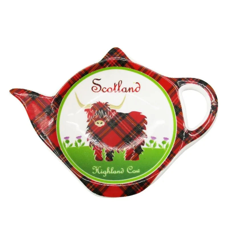 Our Bone China Highland Cow Mug & Teabag Holder Set captures the warmth and charm of a cute Highland cow. It's like having a little piece of the Highlands right there with you every time you sit down for tea. Maybe it's the messy fringe, the gentle eyes, or that calm, steady presence that feels so unmistakably Scottish. Each mug and teabag holder is beautifully decorated with a matching Highland cow design that feels both rustic and elegant. The Highland cow stands proudly in a field of thistles, dressed in classic tartan, with "Scotland" and "Highland Cow" written in an old Celtic-style font that ties the whole look together. And if you'd like to make your collection complete, it pairs beautifully with our Highland Cow Scottish Tea Towel. The mugs, made from dishwasher & microwave safe new bone china and finished with a smooth glaze. They are light in your hand but sturdy and durable. They hold 12.94 ounces, the perfect size for a proper cup of tea, coffee, or hot chocolate. The teabag holders, shaped like tiny teapots measure 3.5" x 5", and they're the perfect place to rest your used tea bags while keeping your table clean and tidy.