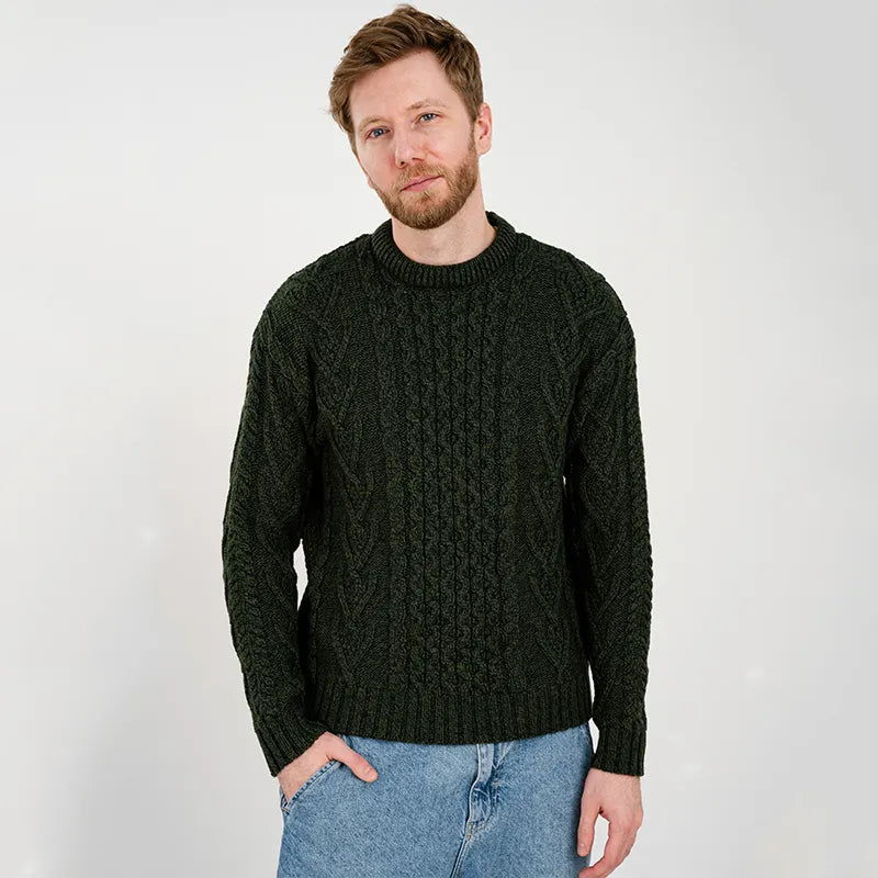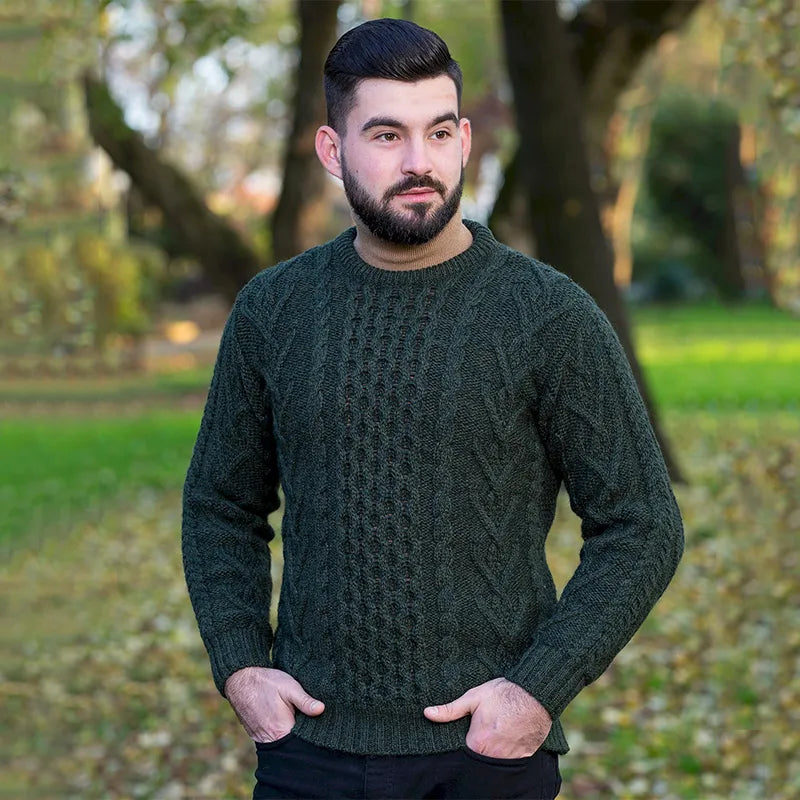 Men's Irish Aran Sweater Green Studio Gaelsong