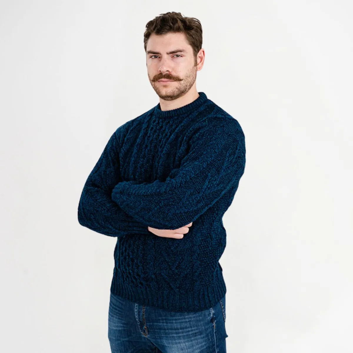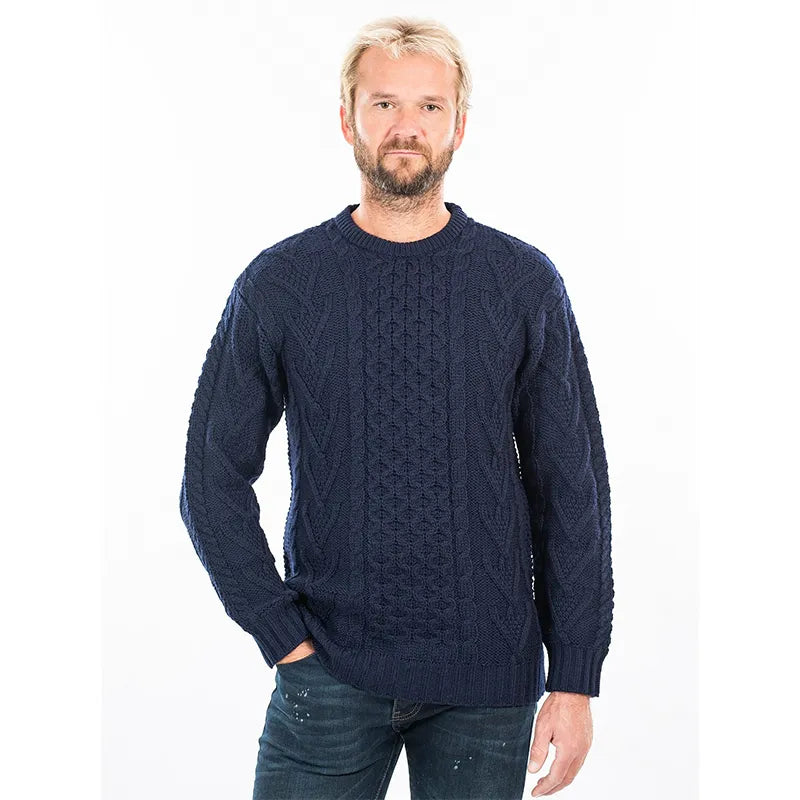 Men's Irish Aran Sweater Navy Studio Gaelsong