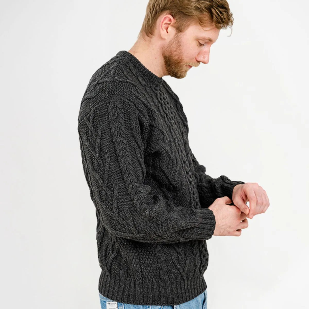 Men's Irish Aran Sweater Charcoal Studio Gaelsong