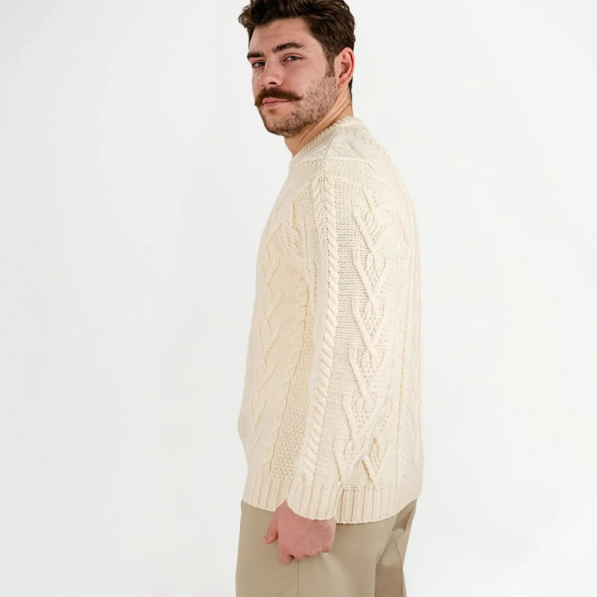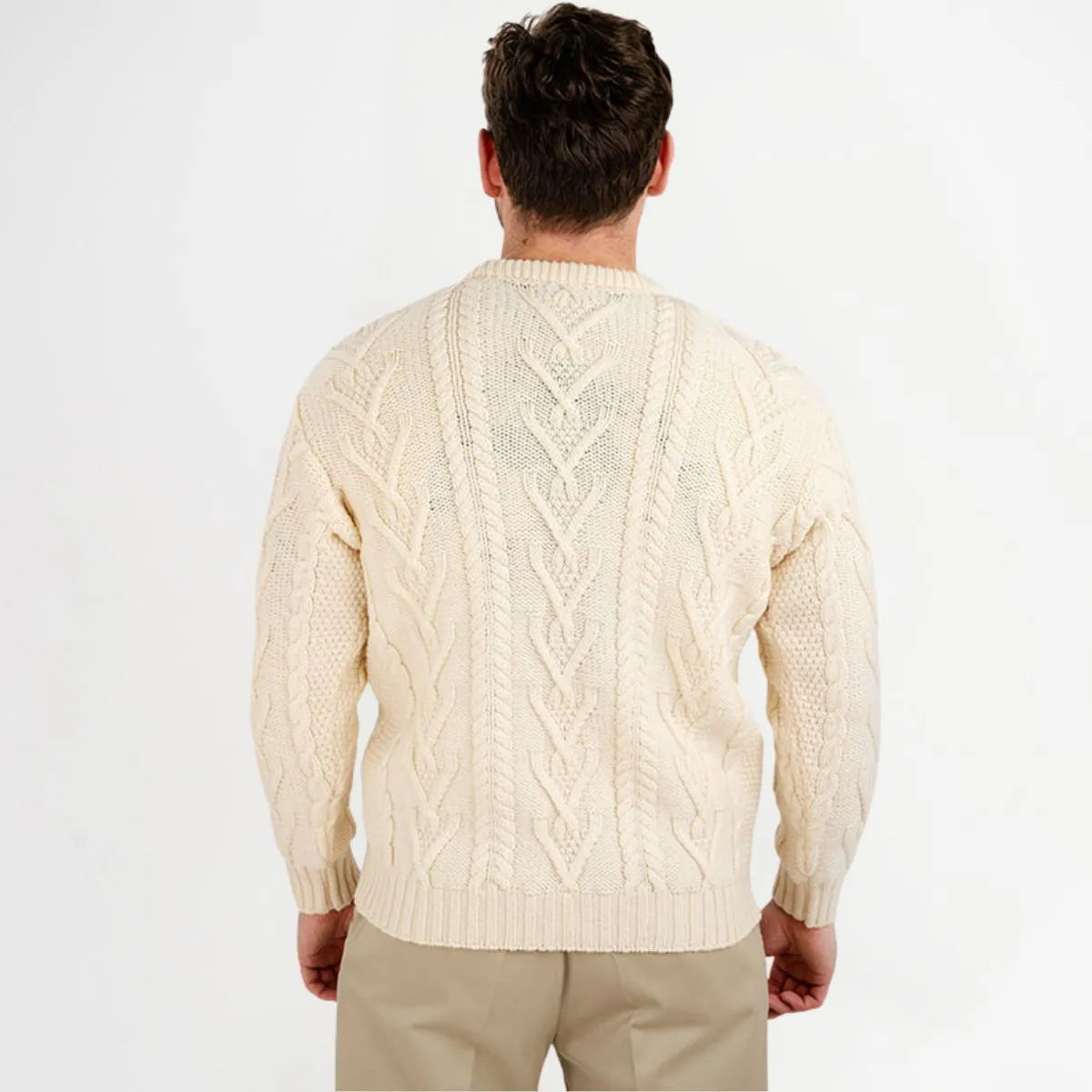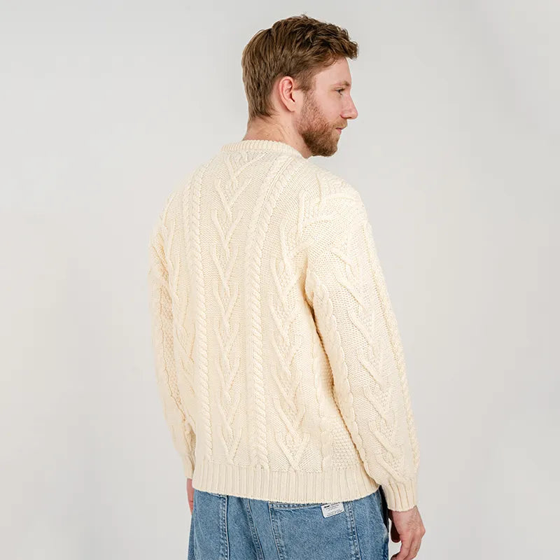 Men's Irish Aran Sweater White Color Studio Gaelsong