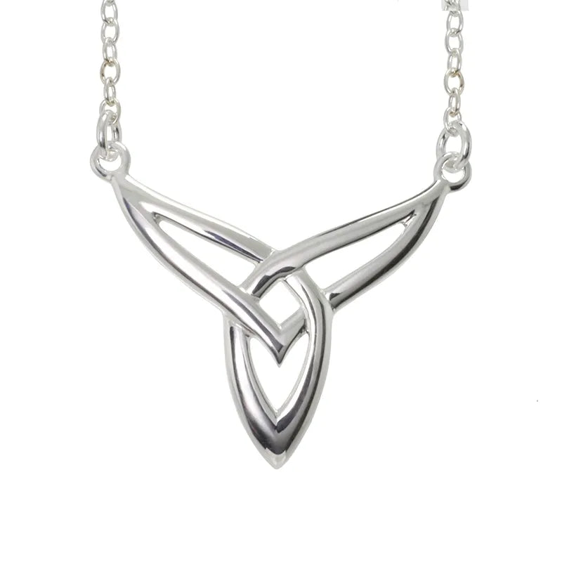 Celebrate the timeless symbolism of our Celtic Trinity Knot Necklace in Silver. This beautiful piece represents the Holy Trinity in Irish Christianity, with its unbroken lines signifying eternal love and infinity. Handcrafted with care in Ireland and hallmarked in Dublin Castle, this necklace is a perfect blend of Irish tradition and elegant design. Made from durable sterling silver, it exudes a charming dazzle that complements any outfit. The pendant measures 0.90 inches in height and 1.10 inches in width, making it a delicate yet noticeable addition to your looks, and comes with an 18-inch chain. For a plus of refinement, it is ideal for pairing with simple silver stud earrings or a matching silver bracelet.