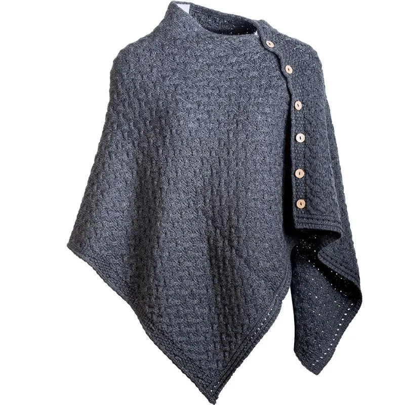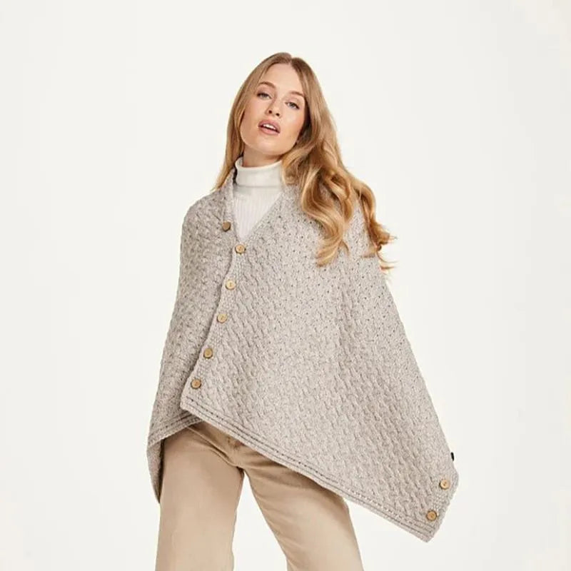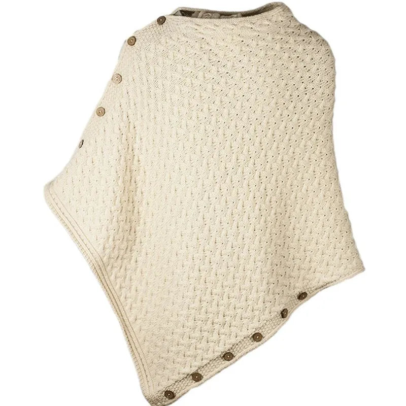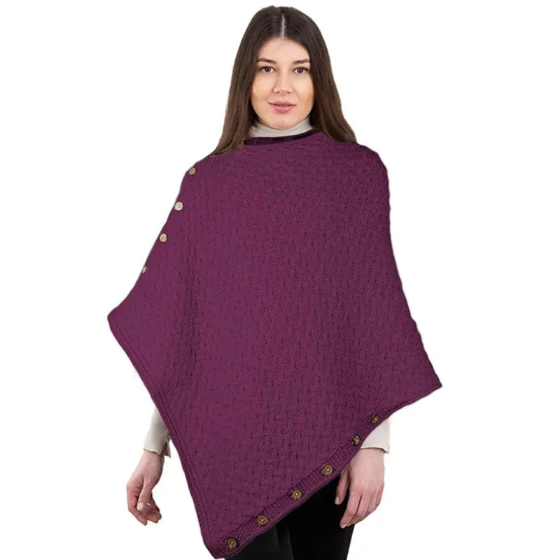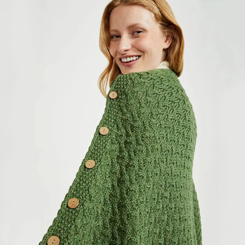 SuperSoft Merino Wool Irish Poncho with Buttons