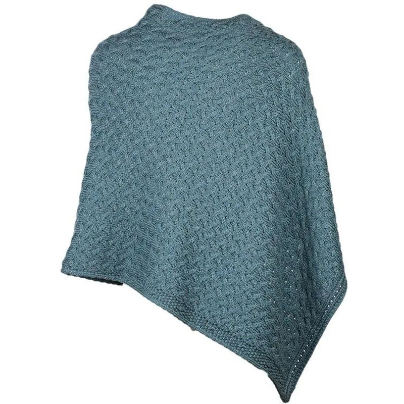 MISTY-BLUE SuperSoft Merino Wool Irish Poncho with Buttons Gaelsong