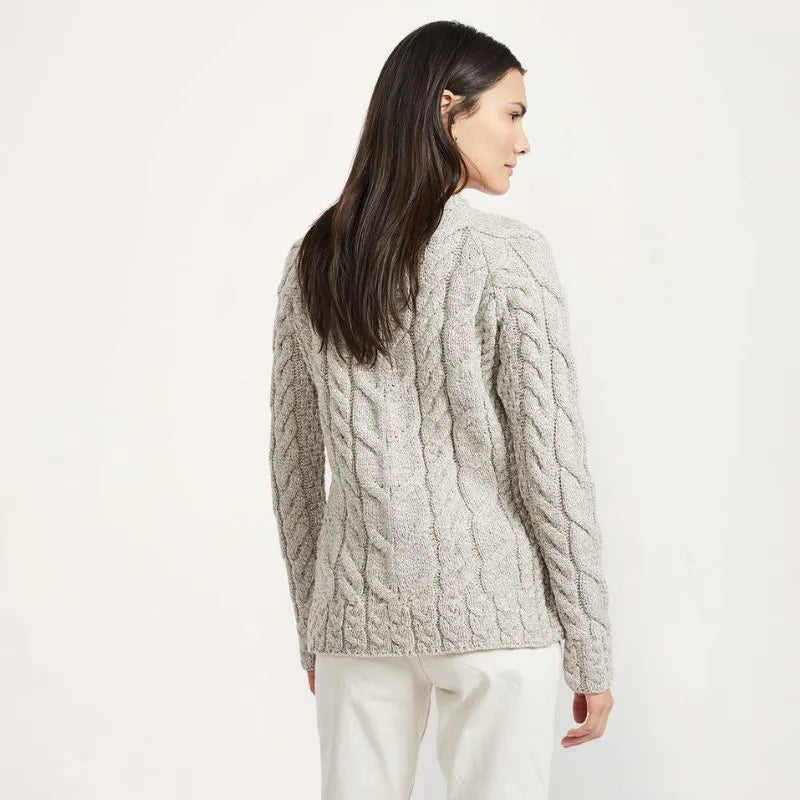 A20323 Color MISTY GREY SuperSoft Merino Oversized Cable Knit Sweater Back View Gaelsong