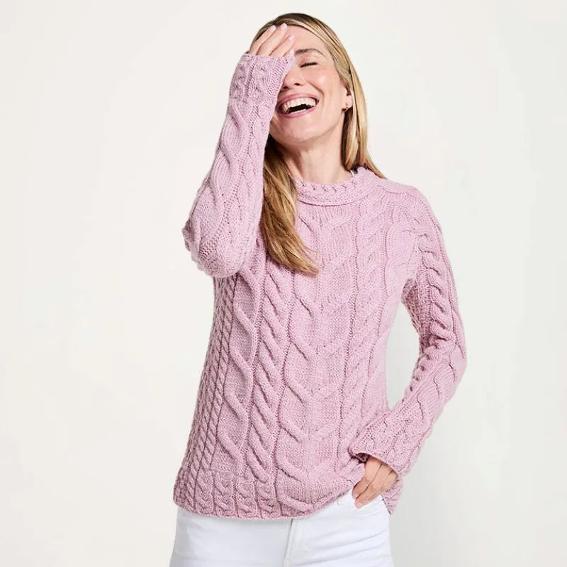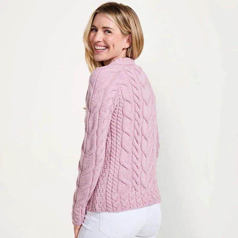 A20323-PINK SuperSoft Merino Cable Knit Aran Sweater Gaelsong