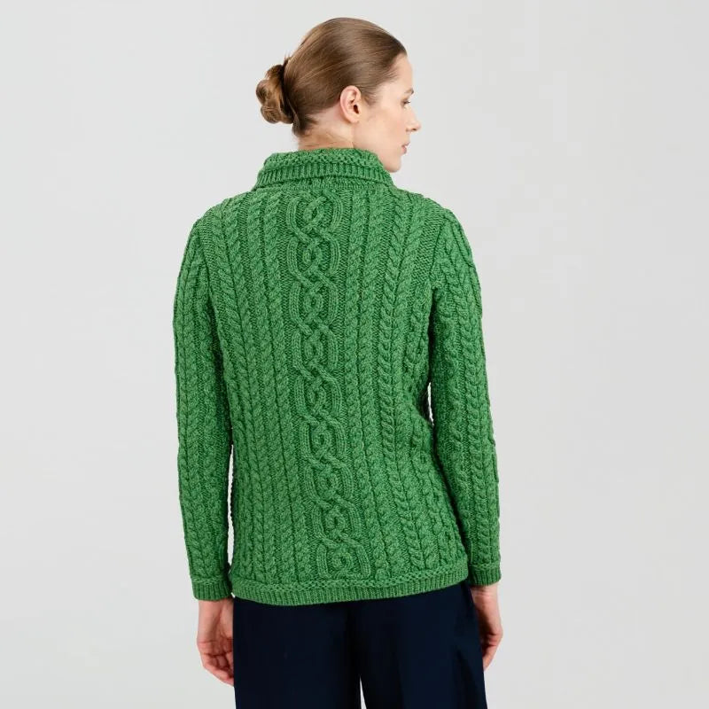 A20295 Ladies Aran Cable Knit Button Cardigan Green Color Back View  Gaelsong