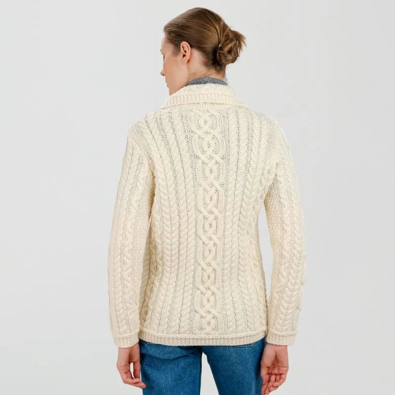 A20295 Ladies Aran Cable Knit Button Cardigan White Color Studio Gaelsong
