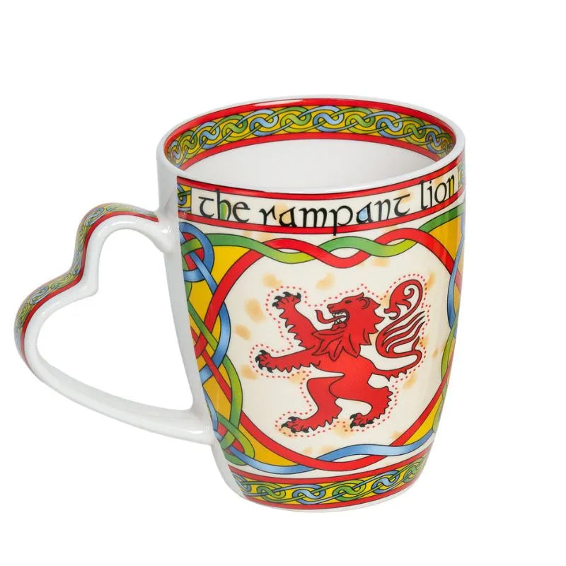 Our Book of Kells Mug & Coaster with Scottish Lion Rampant feels a little more like a ritual than just a routine. From the moment you pick up the mug, you notice the details: the bold Lion Rampant and the vibrant colors inspired by the Book of Kells. It makes you appreciate the story behind it, the pride, courage, and strength of Scotland carried forward in a little mug you can hold in your hands. The mug is made from durable, long lasting 100% new bone china, it has that smooth, comforting weight. The heart-shaped handle is a small, playful touch that somehow makes your drink feel warmer, like the mug was made just for you. With a generous 11-ounce capacity, it's perfect for the kind of coffee that fuels your morning or the tea that helps you unwind after a long day. The 4.13 inches square coasters are crafted from premium wood and backed with cork, they feel solid under your hand and protect your surfaces without even thinking about it. Each one carries the Lion Rampant motif, so your cup doesn't just sit on a coaster, it sits on a little emblem of Scottish pride. What really makes this set special is how it blends everyday comfort with meaning. Each sip feels a little more intentional, a little more connected to heritage, a little more like a pause you actually look forward to. And if you want to make your Scottish-inspired corner even cozier, pairing it with our <a href=" https://www.gaelsong.com/product/157716/irish-pottery ">New Bone China Highland Cow Tea Collection </a> turns your kitchen into a small, warm celebration of Celtic charm.