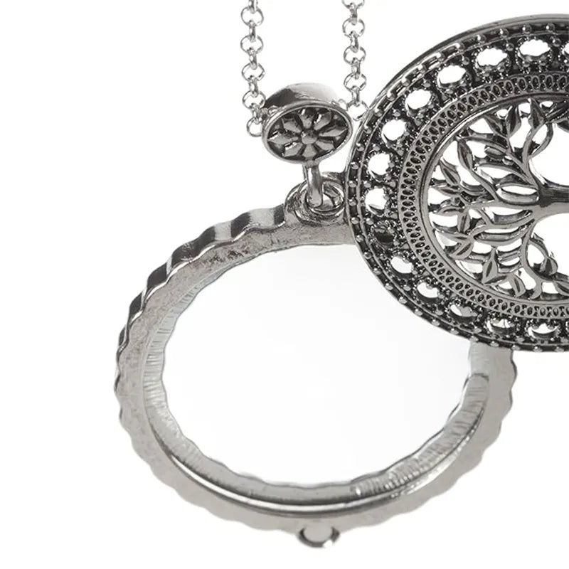 Observe the world up close whenever you feel captivated by it! Whether you wander on a nature walk, get a close-up look at plants and insects, this Magnifier Pendant with a x6 magnifying level will be your locket for a clear view. It's made of a durable and sturdy metal casting blend consisting of 95% Zinc & 5% Aluminum, ensuring a long-lasting use. The pendant is a chic & delicate accessory, measuring 1 ¼" and coming with a 30-33" iron chain so you can wear it right away. You can choose from 6 different models - Spiderweb, Tree of Life, Owl, Butterfly, Snowflake, or gold-tone Dragonfly - for a personalized touch to complete your outfits with style.