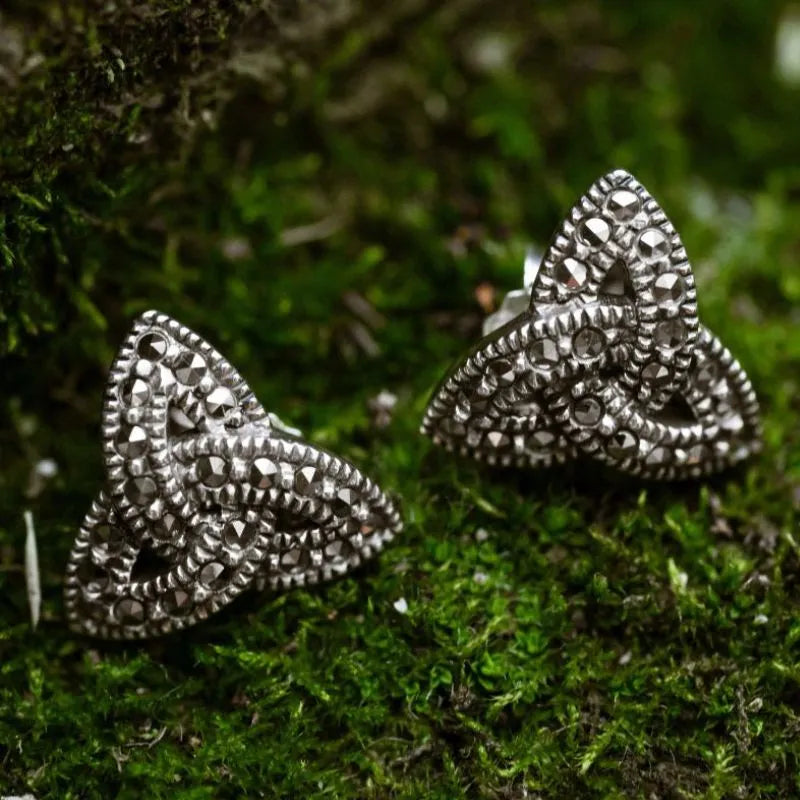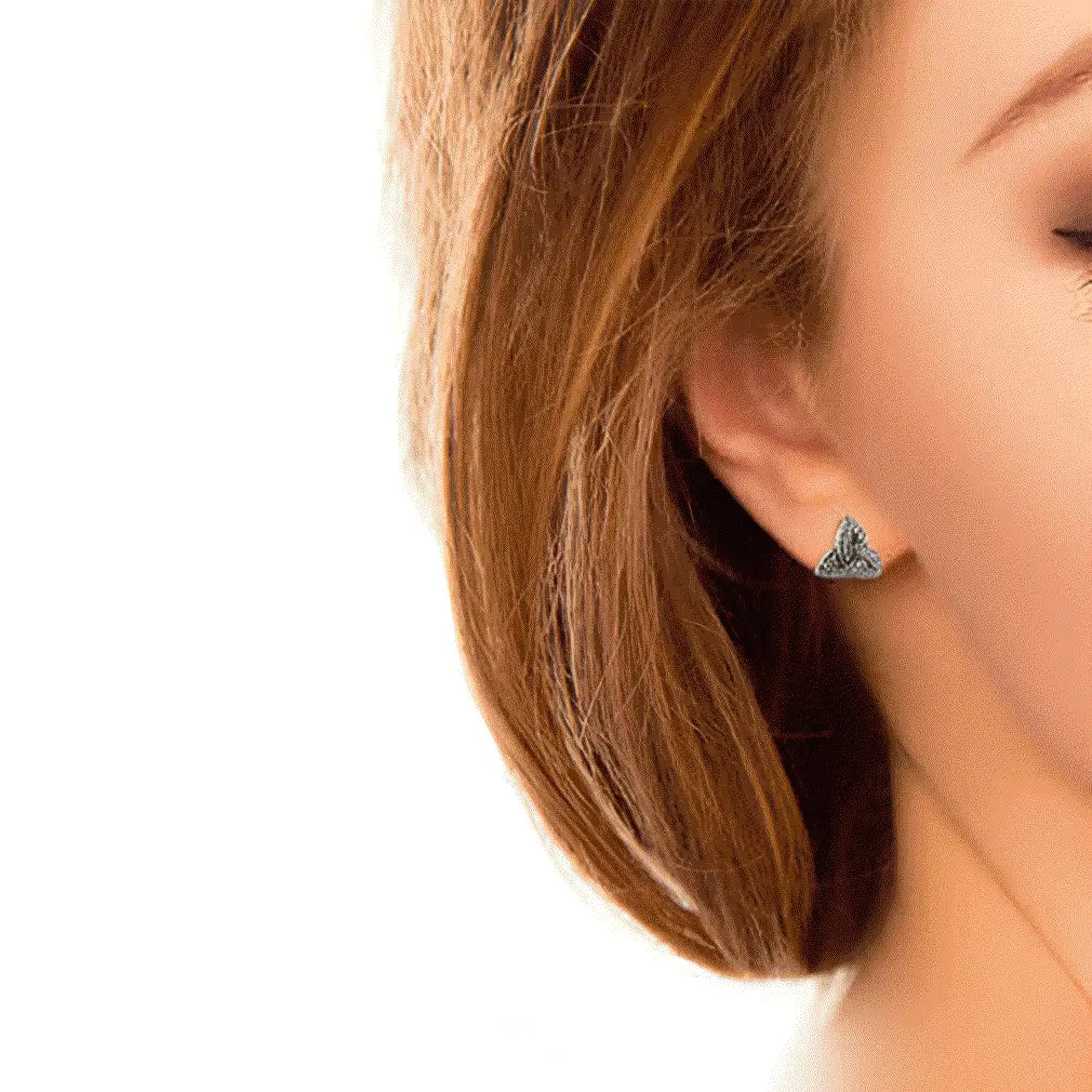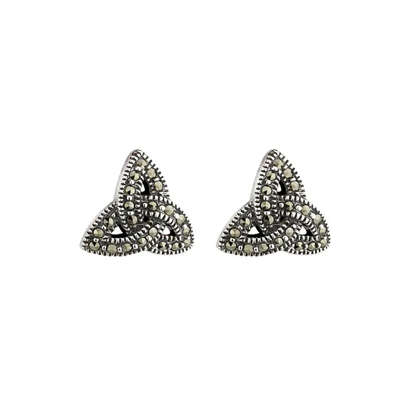 Add a touch of culture to your outfit with these exquisite Irish Antique Trinity Knot Post Earrings. They are crafted with .925 Sterling Silver, a high-quality material that ensures lifelong shine and long-term durability. The earrings feature a timeless Trinity Knot design that alludes to the interconnectivity of all living things. Triquetra is a Celtic symbol that consists of three overlapping points that represent the Holy Trinity in Irish Christianity. The jewelry is carefully detailed with Marcasite, a natural crystal that adds shine and texture to the earrings, making them even more elegant. These vintage-looking earrings are post-back in style, which means that they are ideal for everyday wear. Additionally, each one of them measures 0.39 inches. The jewelry is beautifully packed in a gift box in order to be offered as a culturally inspired gift for someone who loves Ireland and wants to show off their traditions with value and style.