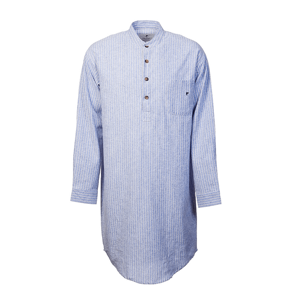 Our Blarney Stone Stripes Men's Cotton Nightshirt is a great alternative to your classic pyjamas. Manufactured from qualitative cotton, this nightshirt is breathable and soft to the touch, lasting for a long time. The stripe design is emblematic of night-time apparel and a great touch to this piece. It features three wooden buttons so you can wear this nightshirt with ease, according to personal preferences. The front pocket is stylish and offers space for you to place smaller items before going to bed. Whether you want a cozy piece to relax in or looking for a comfortable night piece, our nightshirt is the right choice.