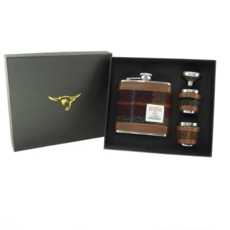 Harris Tweed Hip Flask Set
