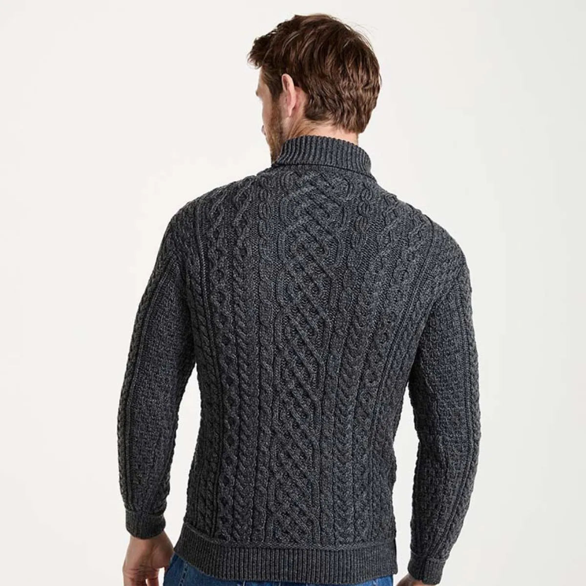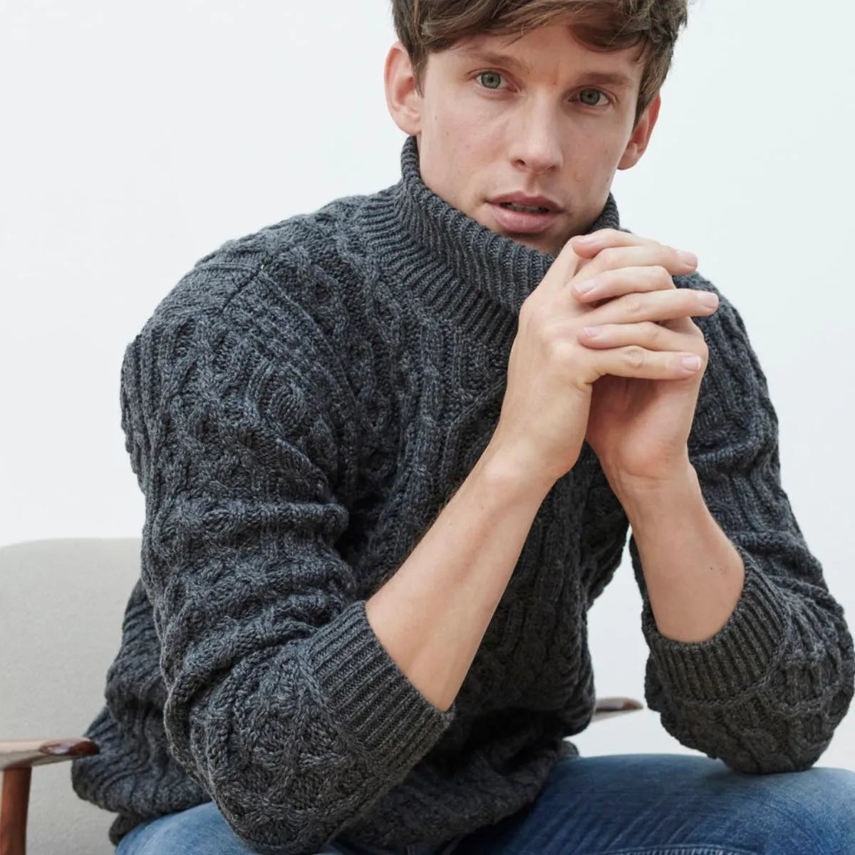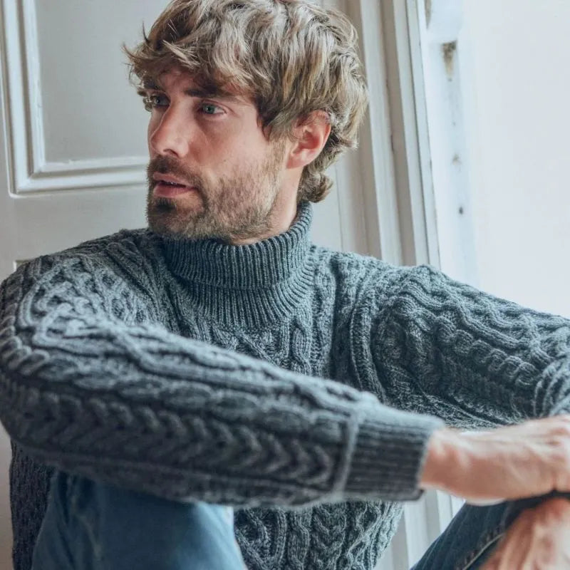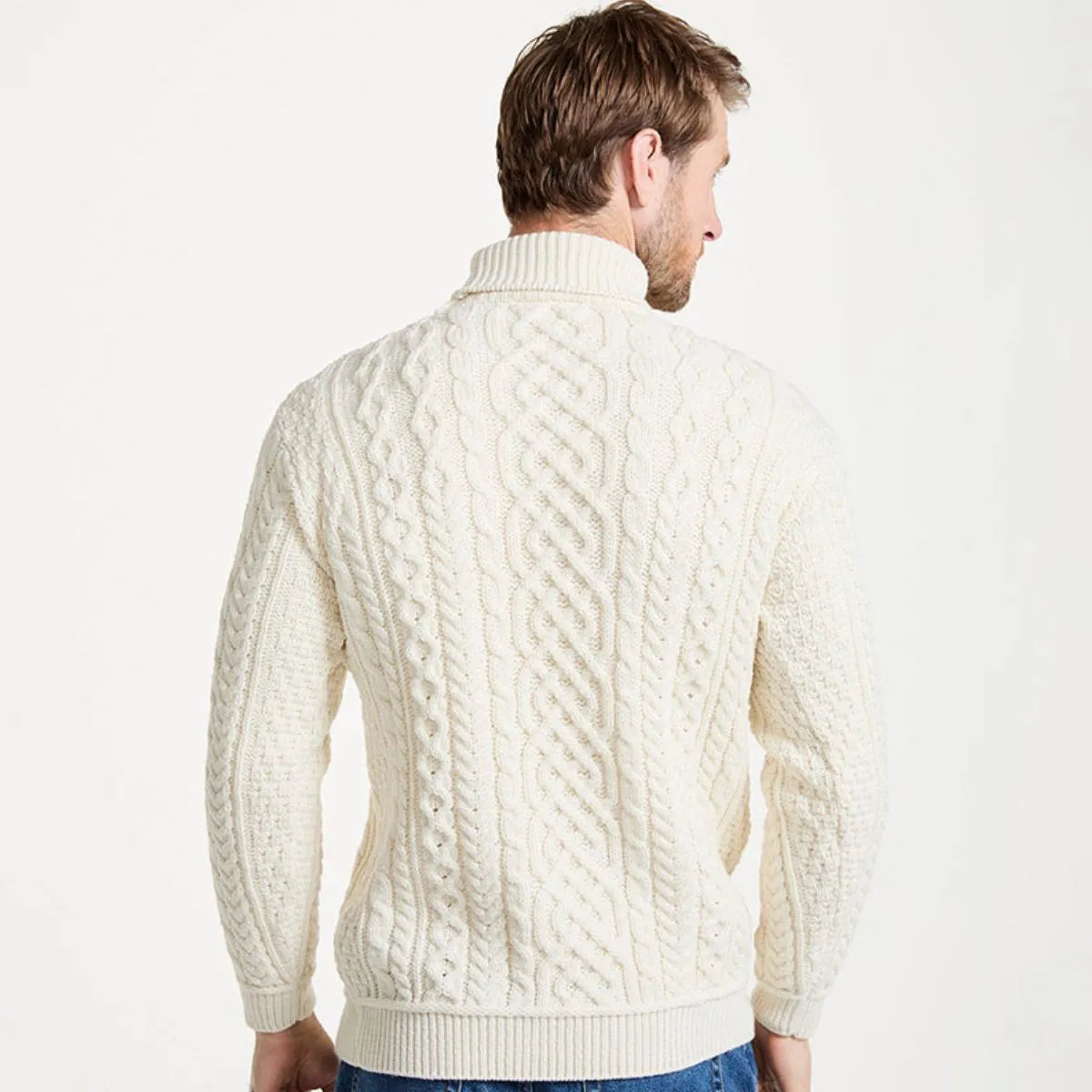 If you're looking for a timeless knitted staple piece, check out our Supersoft Merino Turtleneck Aran Sweater! This piece is crafted from 100% Supersoft Merino wool, a natural, heat-insulating material that feels incredibly smooth against your skin. Woven with centuries-old Irish knitting techniques, this sweater brings you closer to the Emerald Isle. The cable stitch, used since the 19th century, represents protection. The basket stitch is a symbol of protection, while the honeycomb pattern alludes to the industrious nature of bees. The stylish ribbed cuffs, hemline, and turtleneck adds an extra layer of coziness so you can feel snug even in the coldest temperatures. Pair our Aran sweater with a matching knitted scarf and exude elegance!Â
