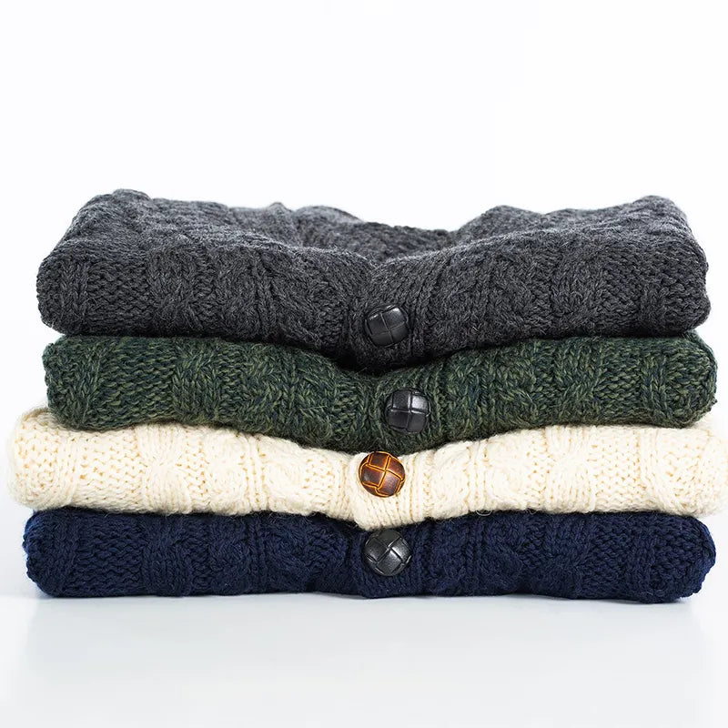 Men's Merino Wool Button-Up Irish Cardigan
