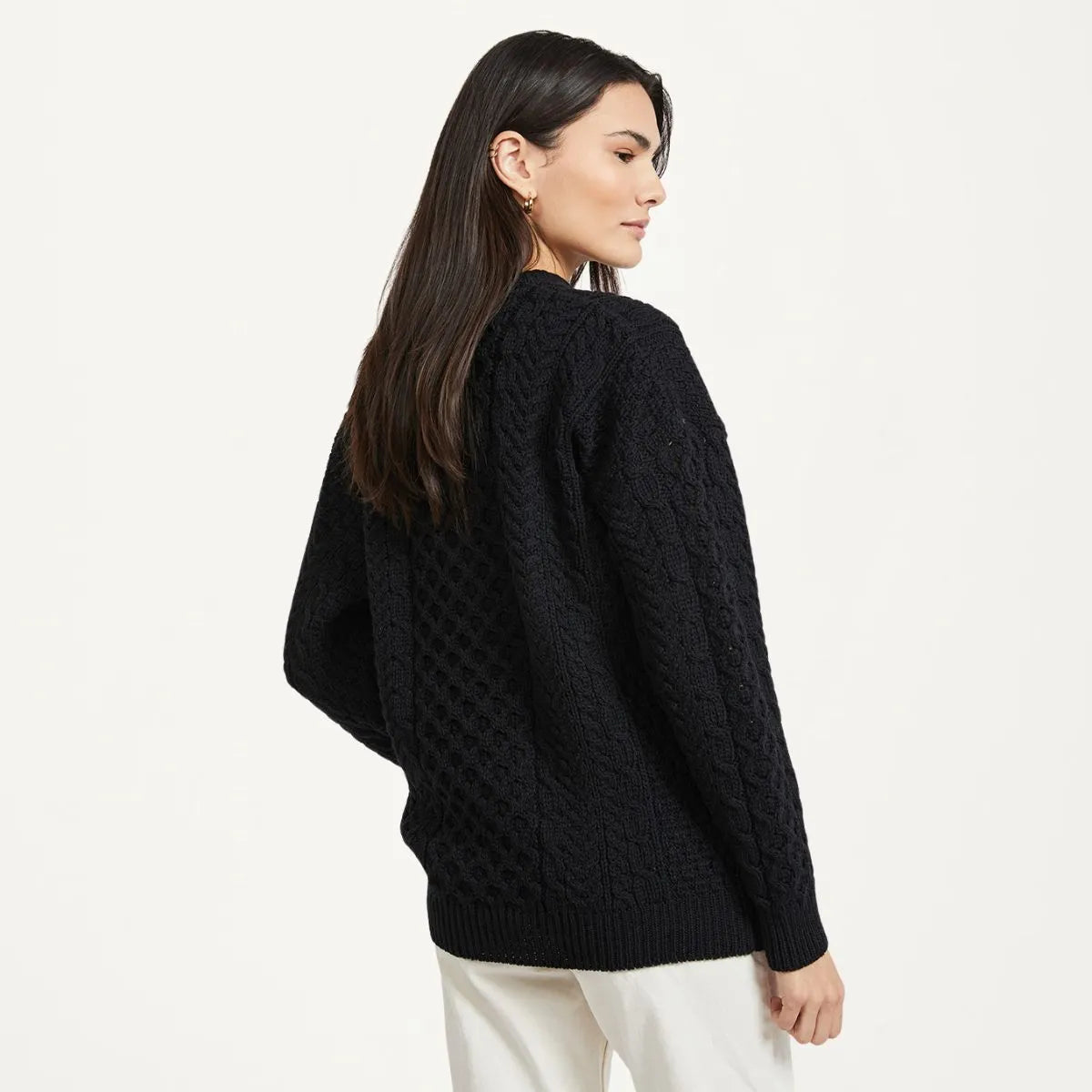 Women's Merino Crew Neck Aran Sweater Black Gaelsong