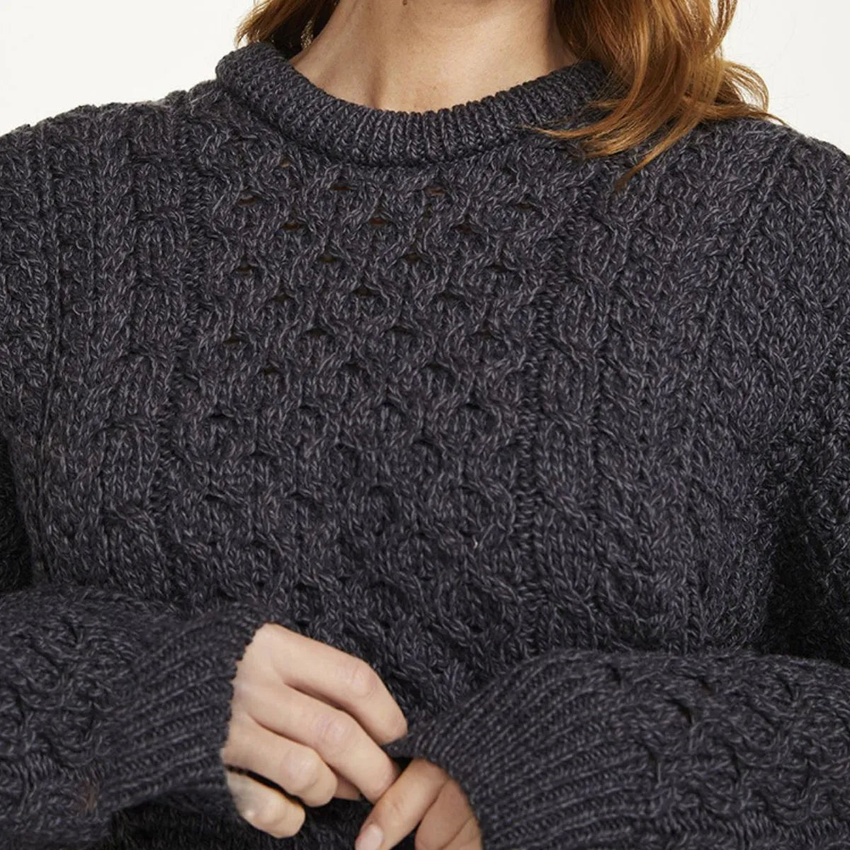 Women's Merino Crew Neck Aran Sweater Atlantic Studio Gaelsong